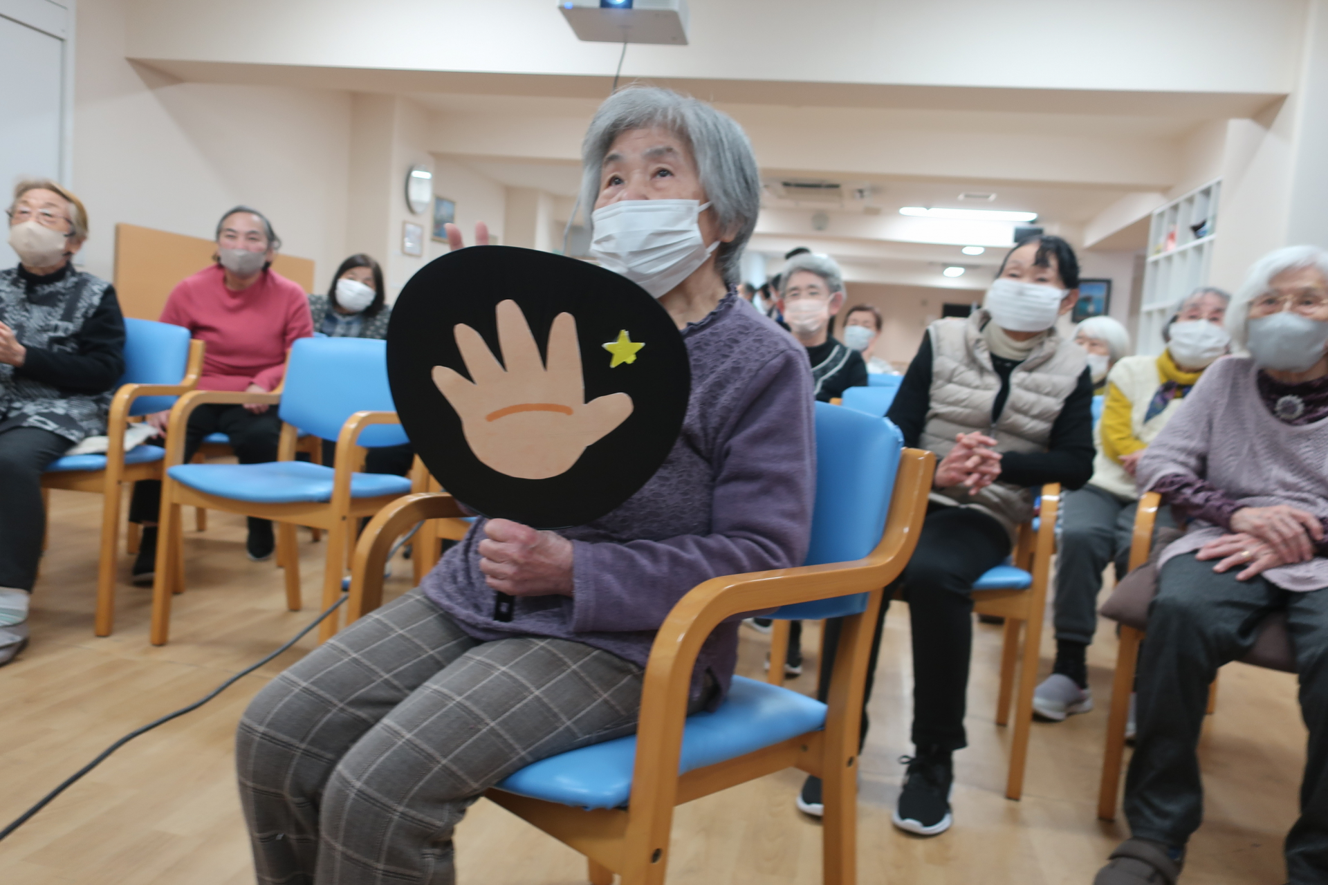 オンラインで繋いで実施する事で、日頃は1事業所内で実施して楽しんで頂いているレクリエーションを、3事業所合同で実施し、楽しさを共有して頂く試みとなっています。