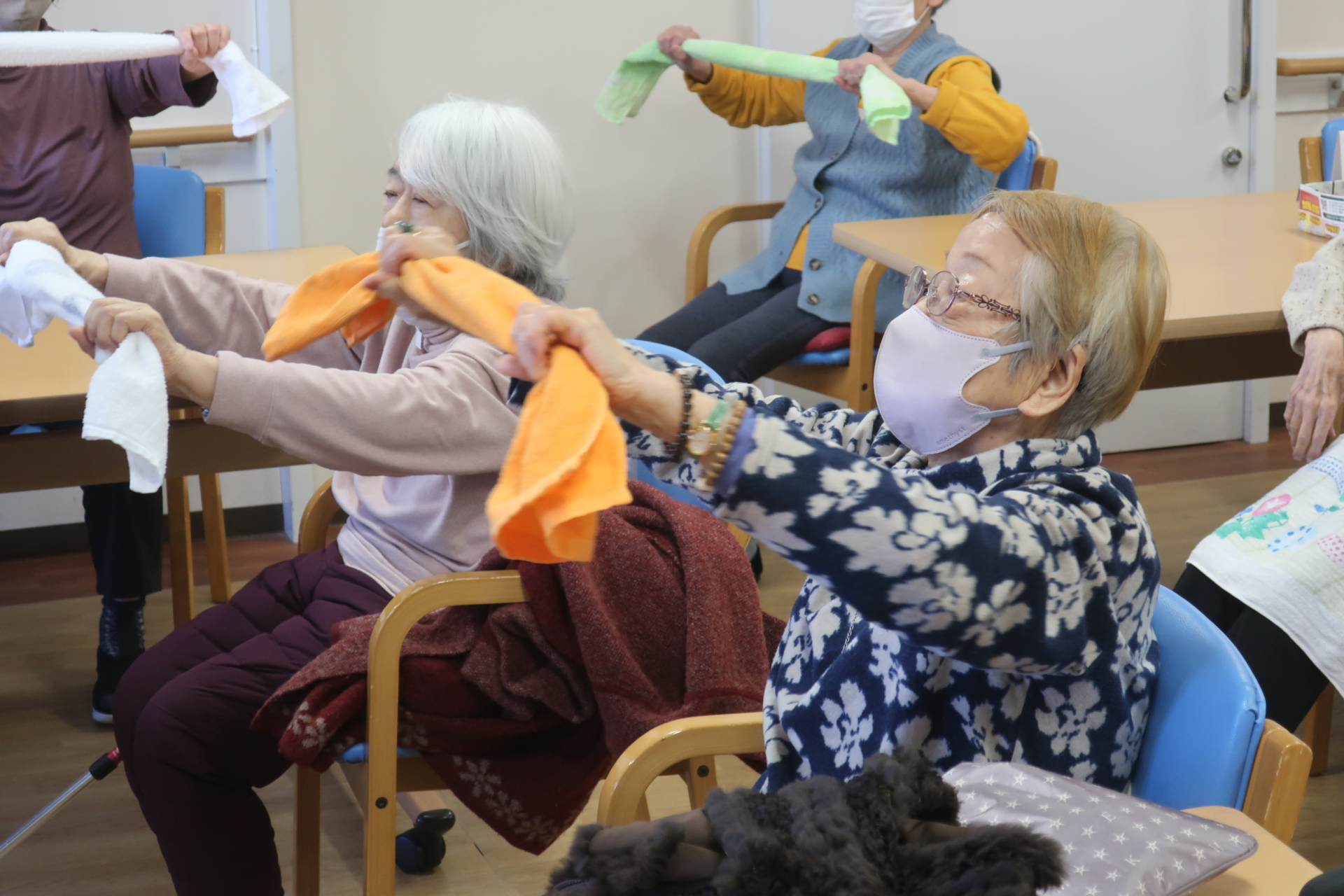 後半は、ゲームの要素も取り入れて、皆さん一生懸命にタオル掴みゲームに取り組まれていらっしゃいました。
