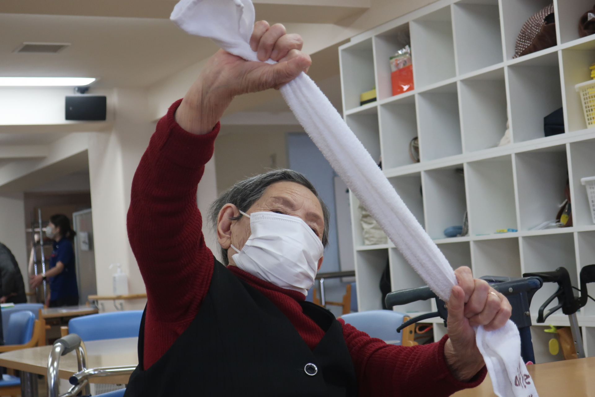 本日の午後の個別レクのタオル体操をご紹介致します。