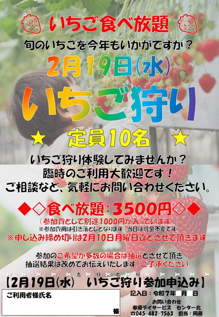 【バレンタインデー】【いちご狩り】は事前申込み制になります。