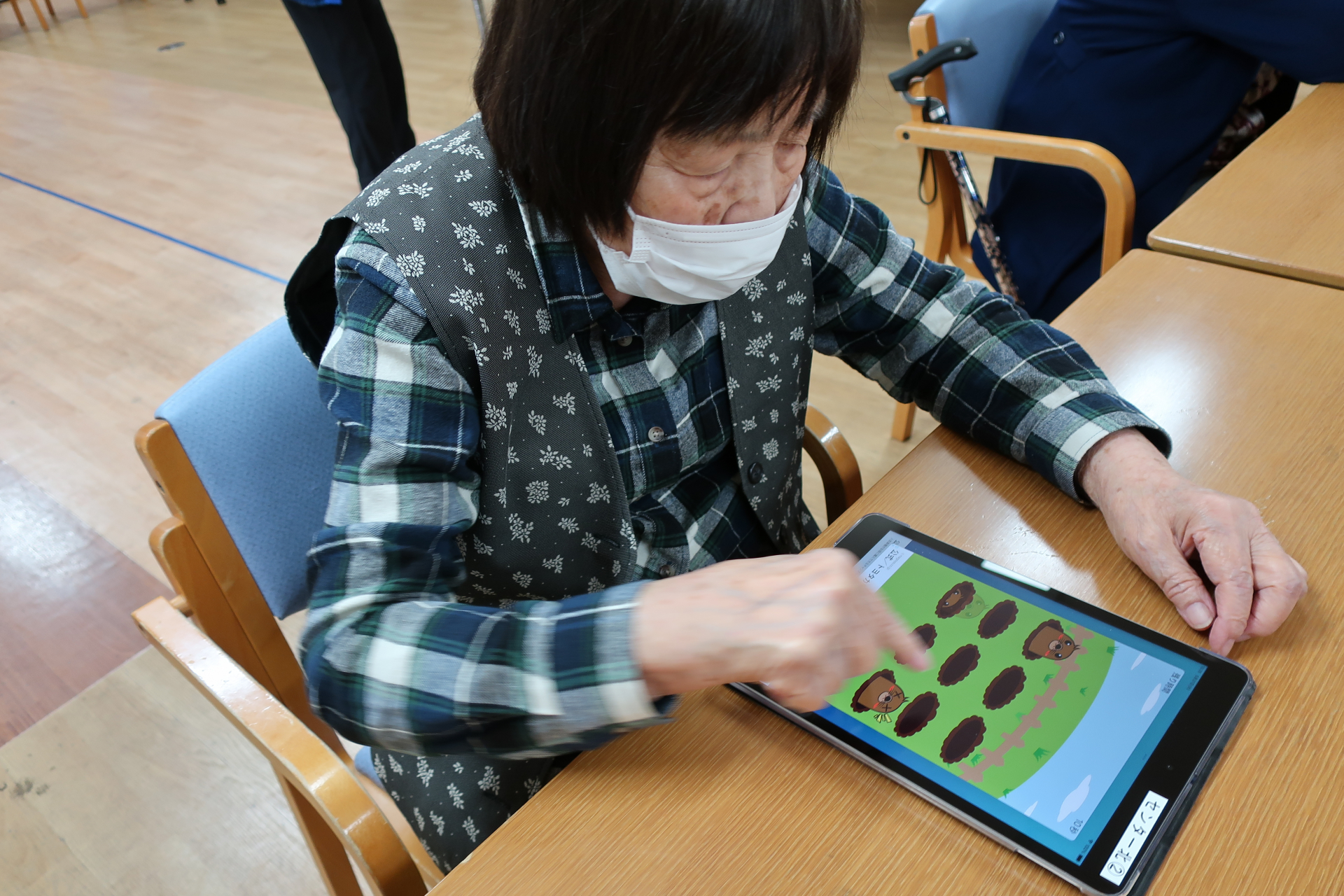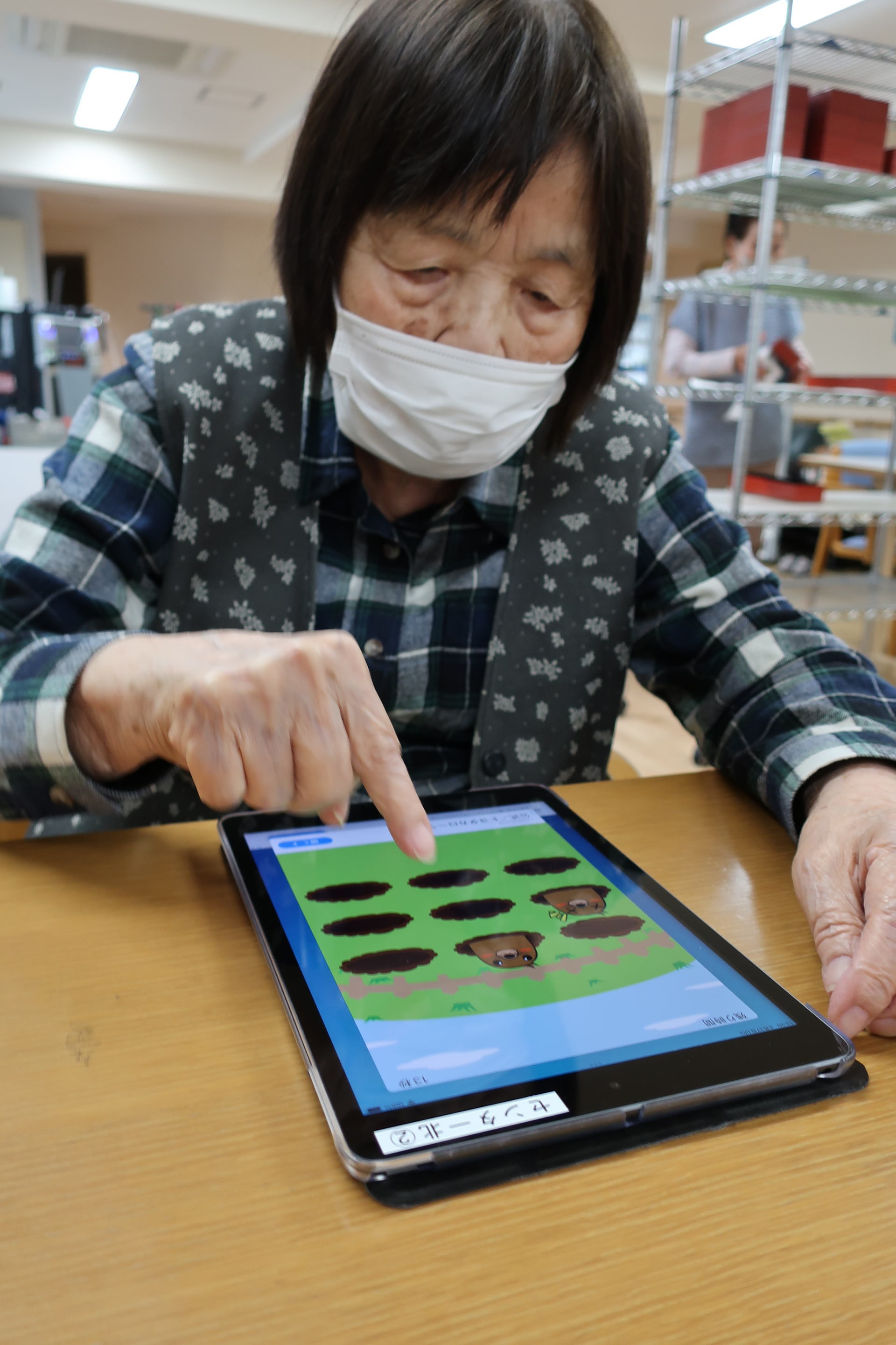 食後の空き時間に、タブレットでゲームを楽しみました。
