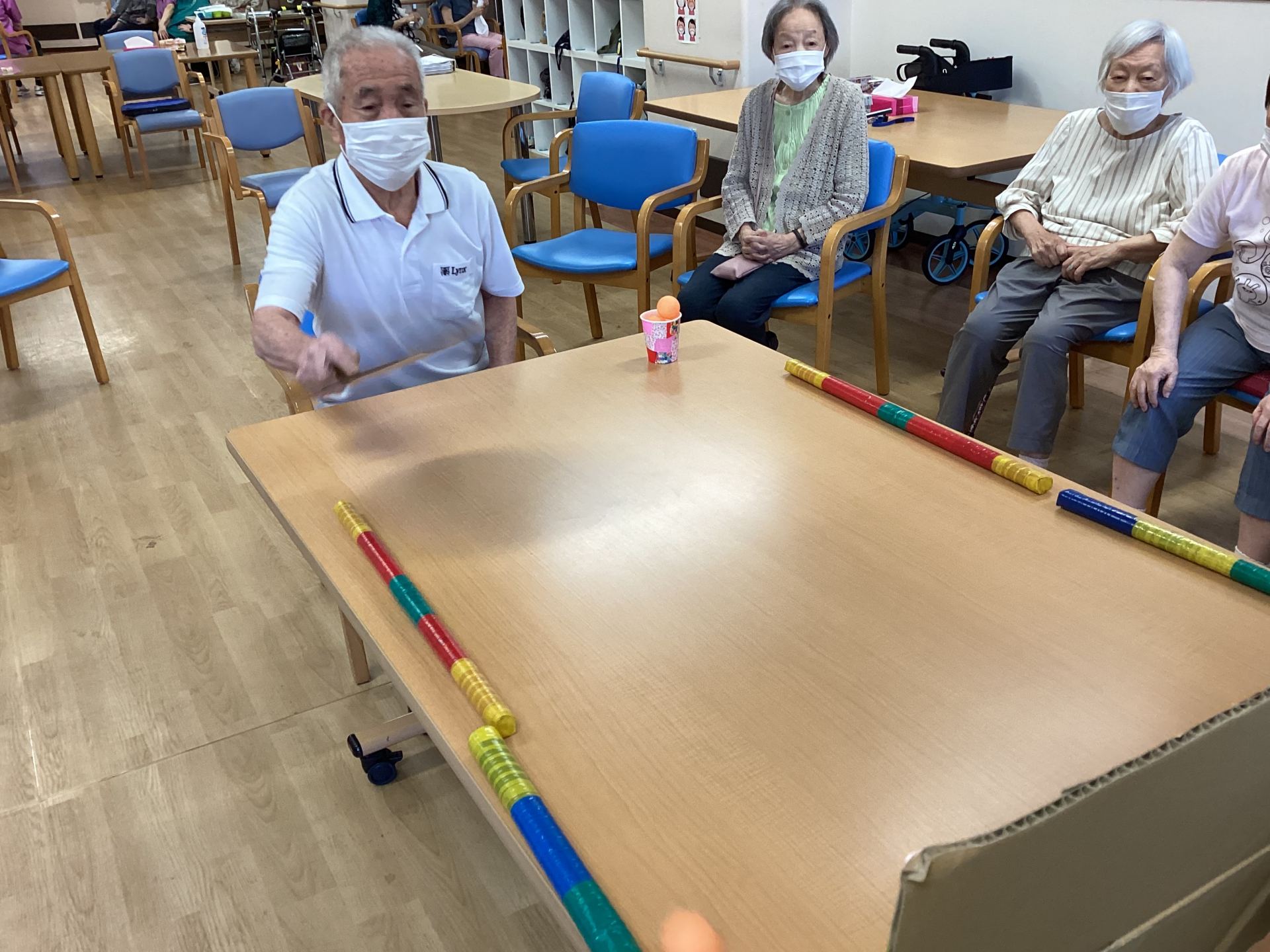 セン北デイでは、個別レクの7月の月刊ゲームとして、うちわでピンポンを開催致しました。