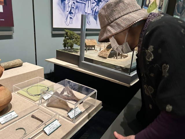 学芸員さまの詳しい説明のもと、みなさま古い物に顔を近づけてじっくりと見学していらっしゃいました。