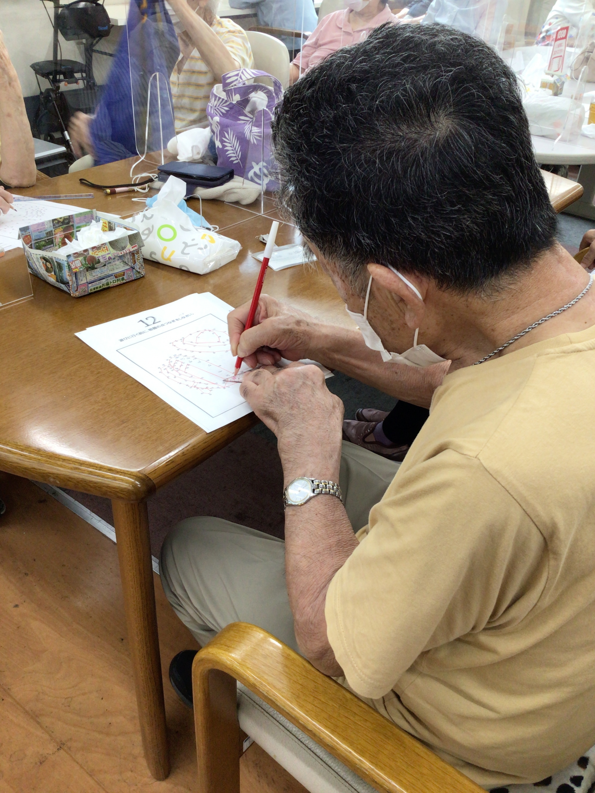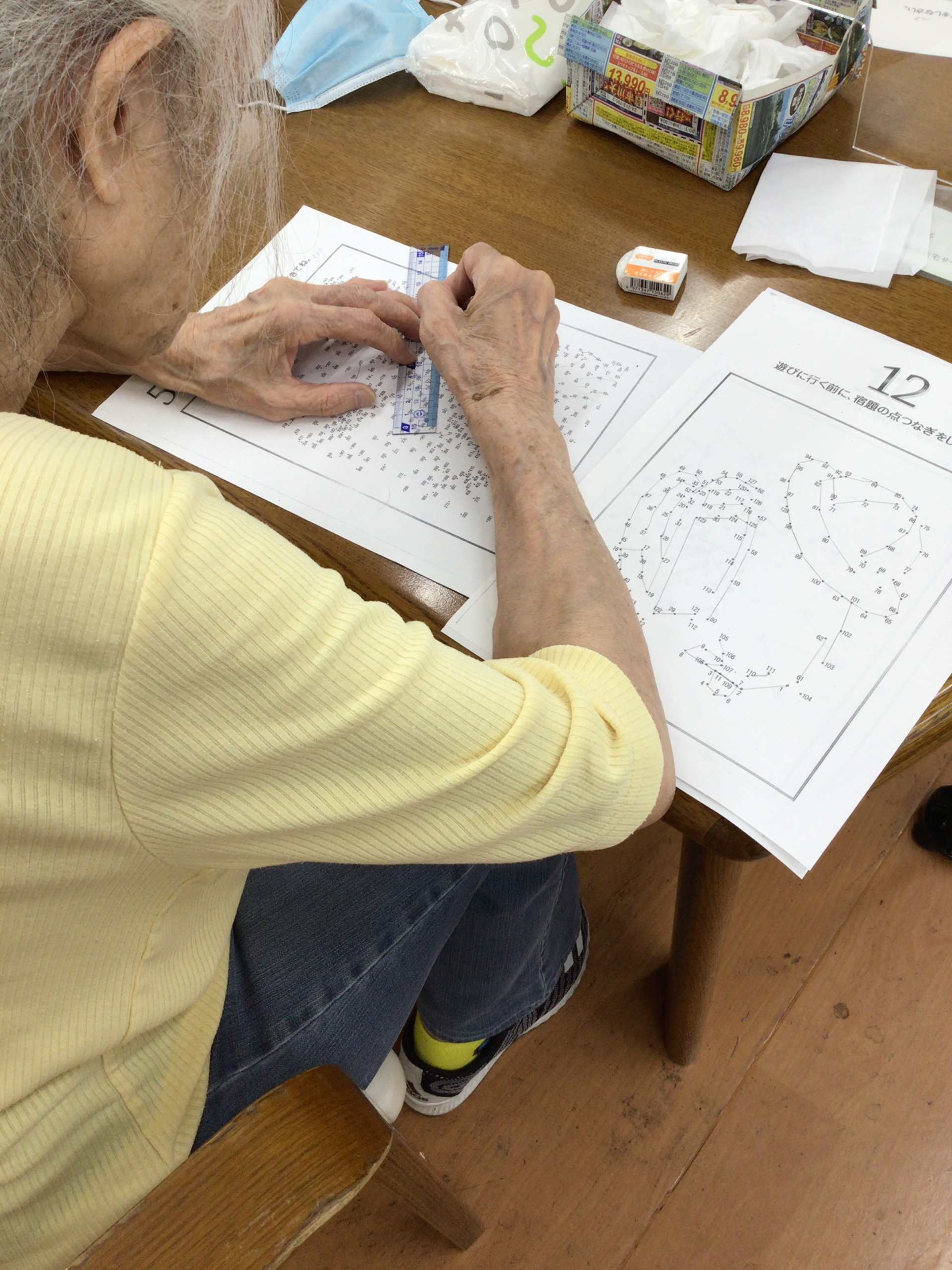 皆様 こんにちは。本日のリラックスタイムで皆様それぞれの好きなことをされました。新聞を読まれたり、点つなぎに取り組まれたり・・・写真をご紹介します。