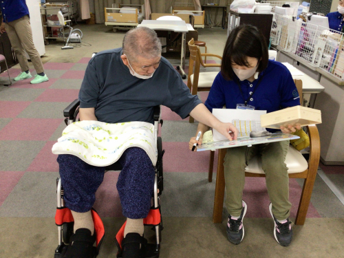 皆様、こんにちは。本日は、お尻を深く座る為に安全な介助のやり方を教えて頂きました。とても勉強になりました。もっと頑張りたいと思います。