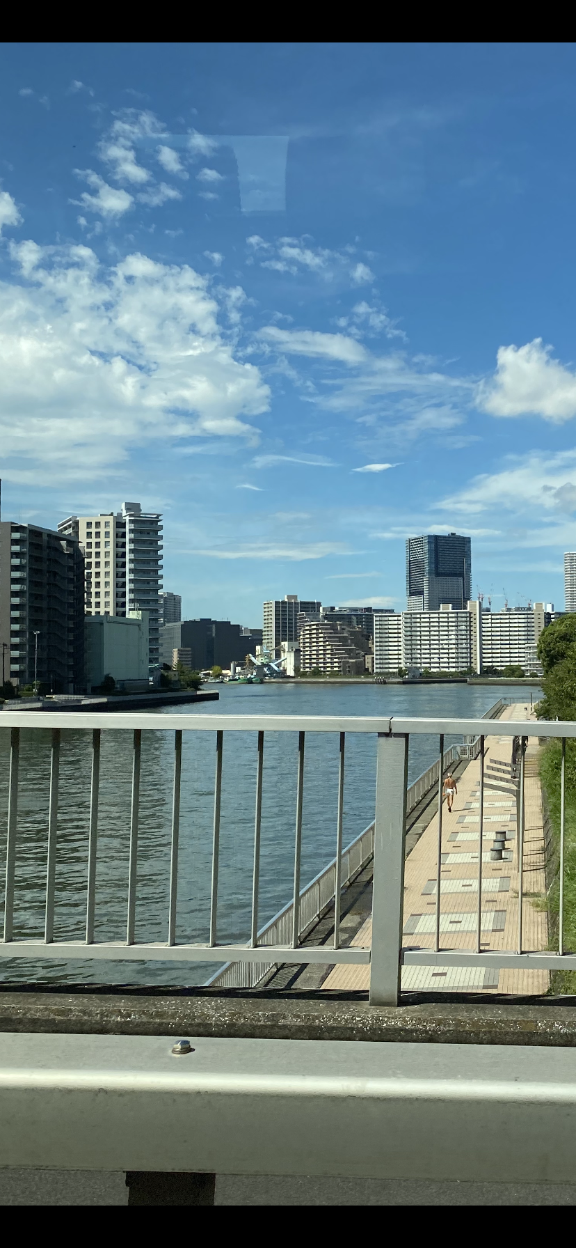 枝川の周りは運河など美しい景色があります。とても天気が良く、散歩をしたり、ジョギングを楽しんでいる人たちがいました。だんだん秋の陽気になりますね。