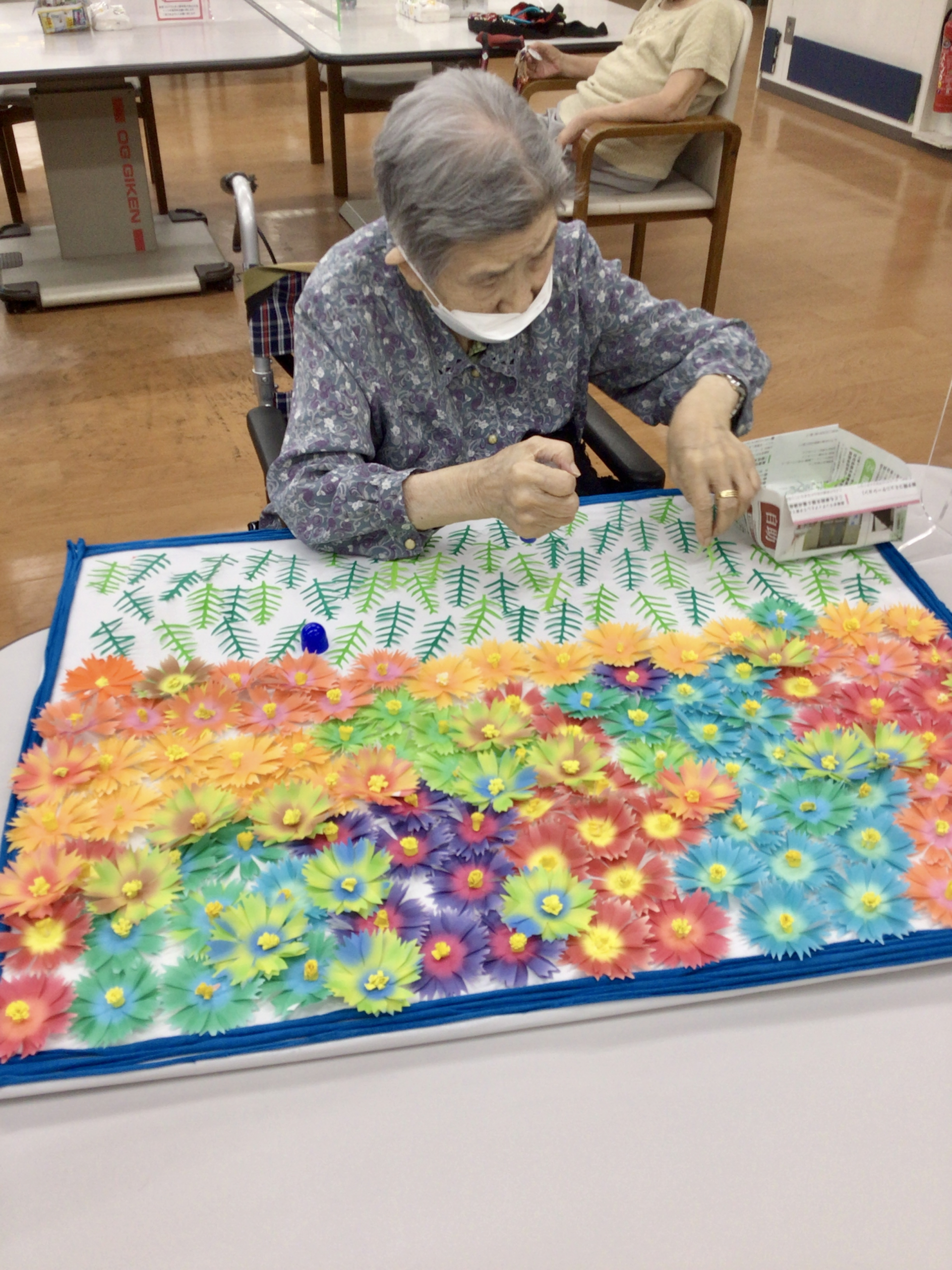 皆様、こんにちは。枝川高齢者在宅サービスセンターでございます。K様やM職員の作品を見た人からは「…わぁ…綺麗…」、「まるで本物の庭のよう…」「綺麗なコスモス…いろんな色の組み合わせがとても魅力的ですね」と声があがりました。本当に綺麗にできましたね。感動します。 文章:プスパ