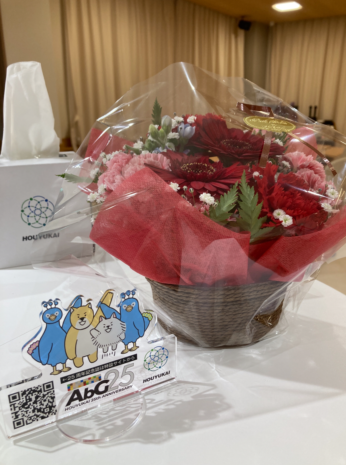 こんにちは。枝川高齢者在宅サービスセンターです。引越し祝いにお花を頂きました。受付に飾ってありますので是非ご覧ください!