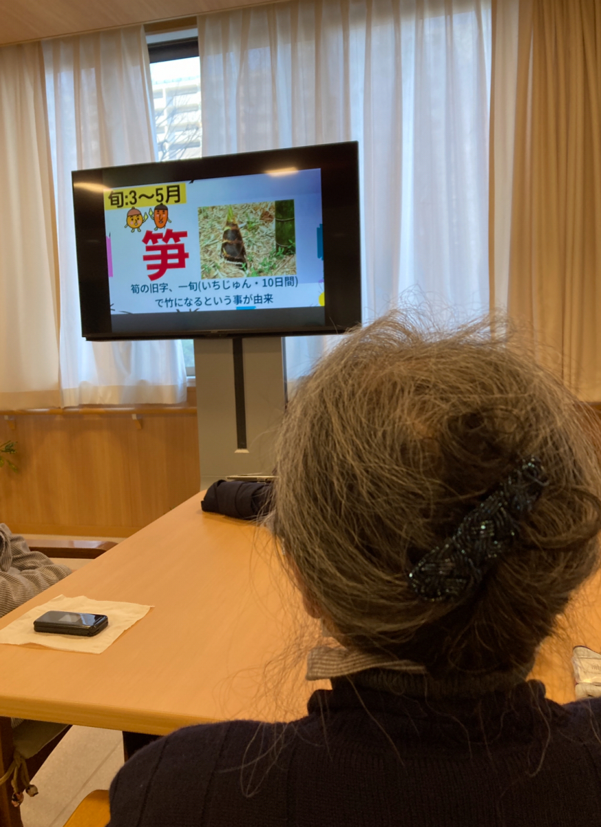 こんにちは。枝川高齢者在宅サービスセンターです。今日の脳トレレクは春にまつわる物をお題に進めて行きました。春キャベツに初鰹と蕗のとうなどの食べ物や桜の花が描かれている硬貨は何円玉?などのクイズが出題されました。所で春の野菜は春菊やセロリ、菜の花やウドなど何処か苦味や独特の味がする物が多いと思いませんか。一説では冬の寒さで身体に溜め込まれた物を苦味で身体の外に出す作用があると言われています。旬の物を取り入れて寒暖差を上手に乗り切りたいですね。