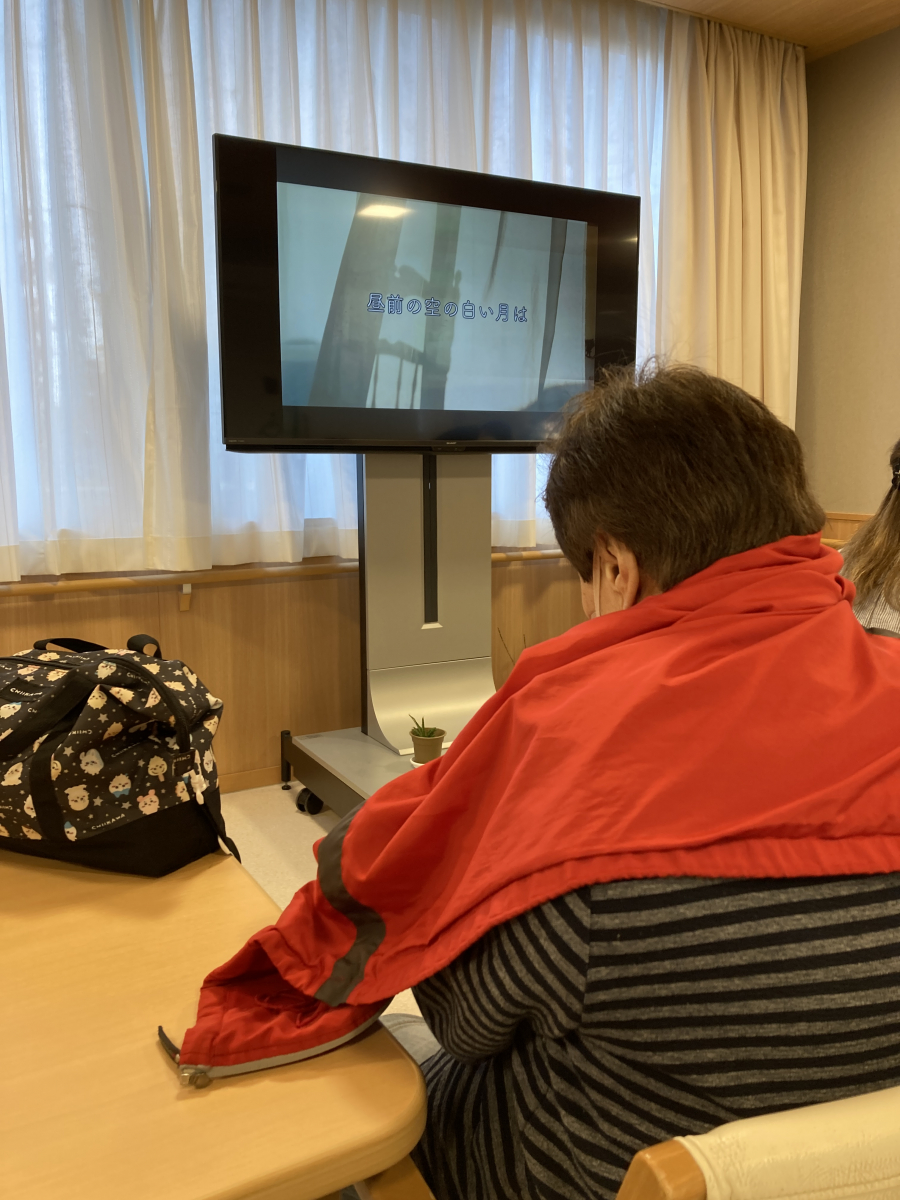 こんにちは。枝川高齢者在宅サービスセンターです。今日のレクはカラオケでした。もうすぐ卒業式という事で旅立ちをテーマに「花は咲く」「贈る言葉」「なごり雪」「襟裳岬」などを中心に皆んなで歌って頂きました。またリクエスト曲ではインドネシアでも広く知られているというKiroroの「未来へ」とレミオロメンの「3月9日」を頂きました。知らない曲もサビならわかる、という方も多く積極的にご参加頂きいつもありがとうございます。