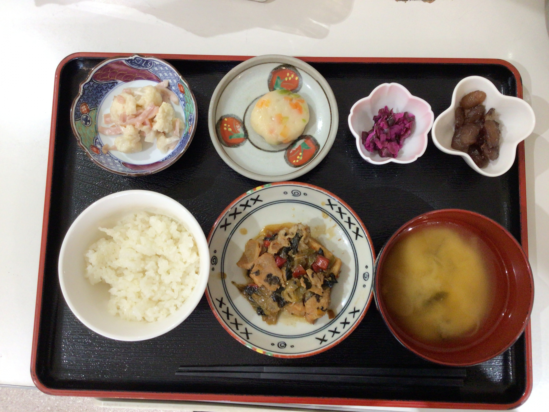 皆様、こんにちは。枝川高齢者在宅サービスセンターです。本日のメニューは厚揚げと青梗菜の中華炒めと枝豆しんじょうとカリフラワーのハムサラダと金時豆と漬物でございます。厚揚げと青梗菜の中華炒めに入っている豚肉が残っているのでが散見されました。味がはどれも美味しいとの事。利用者様の反応はメインの中華炒めの味がしっかりしていたのでご飯のおかずとして良かったです。との事でした。