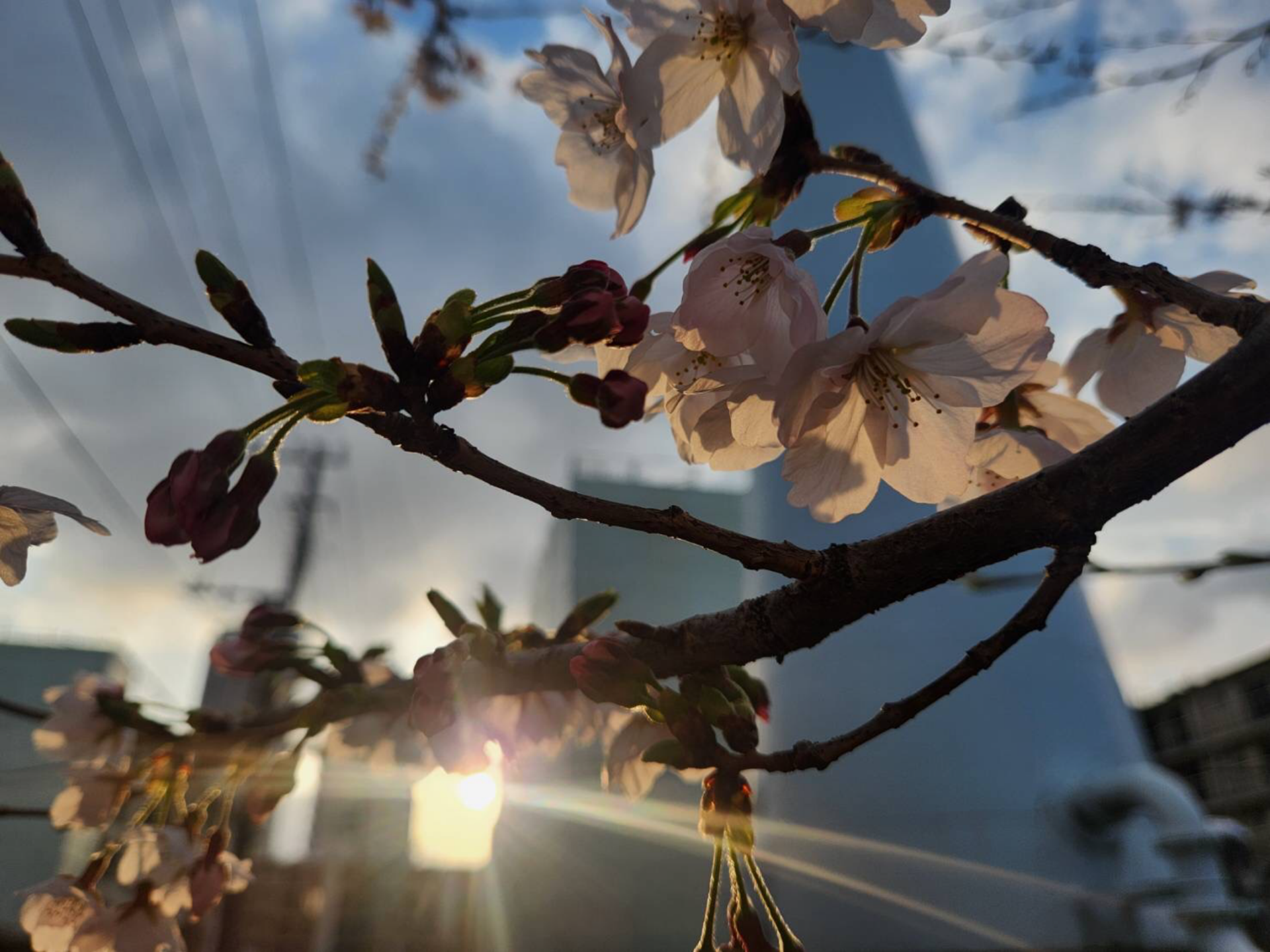 こんにちは。枝川高齢者在宅サービスセンターです。帰りの送迎でS様と桜の写真を一枚頂きました。送迎車の中から見てもどの桜も大体4割程度の開花となっていました。満開まであともう少しですね。