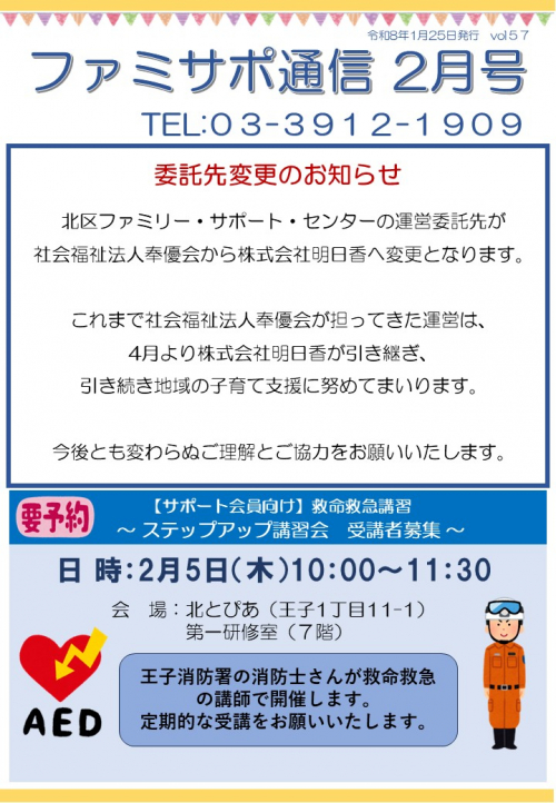 2026.01.30 土日も対応しております ファミリー・サポート 2026.01.29 【ファミリー会員様へ】サポートできない活動についてのご確認 お知らせ 2026.01.28 もうすぐ節分ですね。 ファミリー・サポート 2026.01.27 現在 令和7年度 利用者満足度調査実施中です。 ファミリー・サポート 2026.01.25 【初めての方へ】「サポート会員登録」に関する疑問 ファミリー・サポート 2026.01.25 「ファミサポ通信2月号」発行しました!! ファミリー・サポート 2026.01.22 城北エリア勉強会 ファミリー・サポート 2026.01.15 【ご報告】あそびのひろば説明会を行いました! ファミリー・サポート 2026.01.10 休館日のお知らせ ファミリー・サポート 2026.01.10 【1月】ファミリー会員登録説明会の空き状況につきまして ファミリー・サポート 2026.01.08 YELLボランティア 募集 ファミリー・サポート 2025.12.28 年末年始のご挨拶 ファミリー・サポート 2025.12.27 「ファミサポ通信1月号」発行しました!! ファミリー・サポート 2025.12.22 休館日のお知らせ ファミリー・サポート 2025.12.10 合同講演会『 発達障害講座 』お申し込み 受付中 ファミリー・サポート 1 2 3 … 34