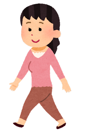 歩いて(自転車の場合もあります)