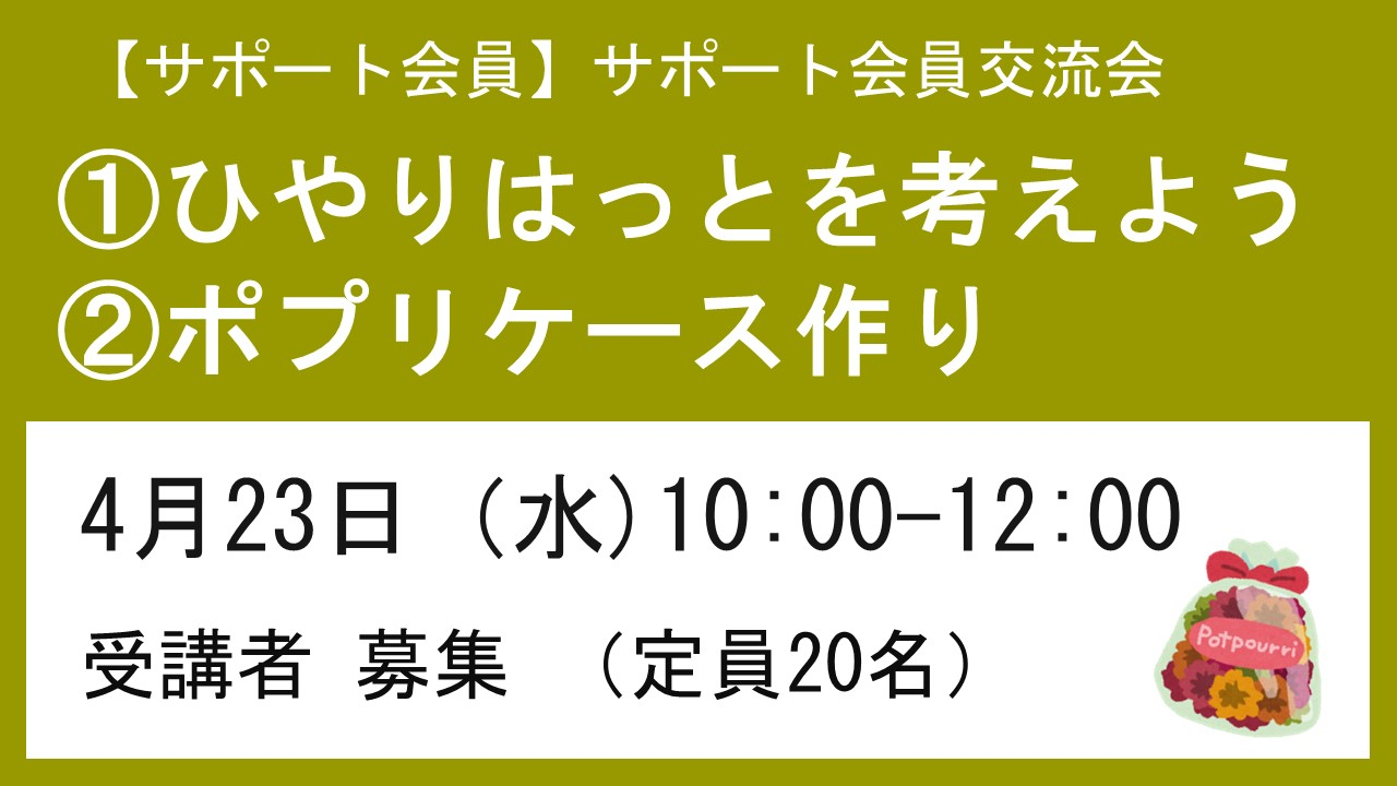 4/23(水)「サポート会員交流会」を開催予定です(*'▽')