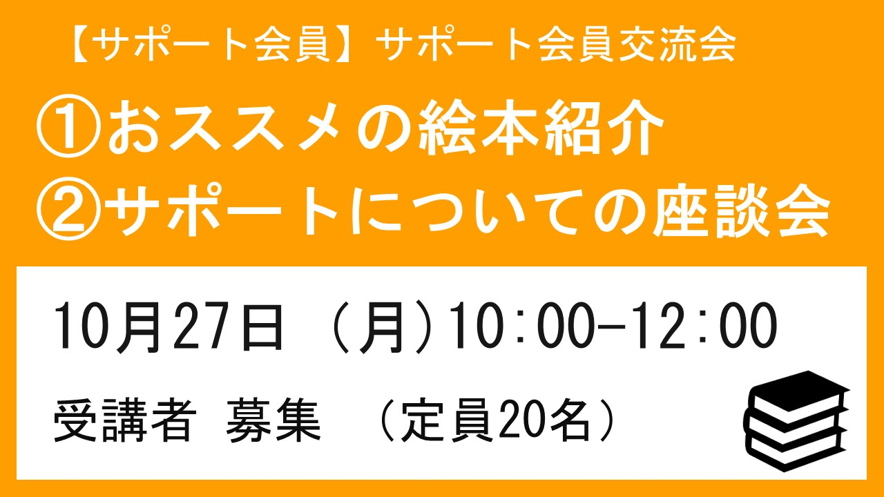 次回は、10月27日(月)北とぴあ 802号室にて、おススメの絵本の持ち寄り(もちろん、絵本をご持参いただかなくても構いません(^^♪)、情報交換や、サポートについての座談会をします。