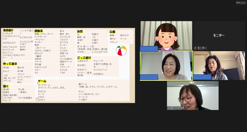 「子どもの遊び」の講義では、思い出の遊び経験を語っていただく場面も♡