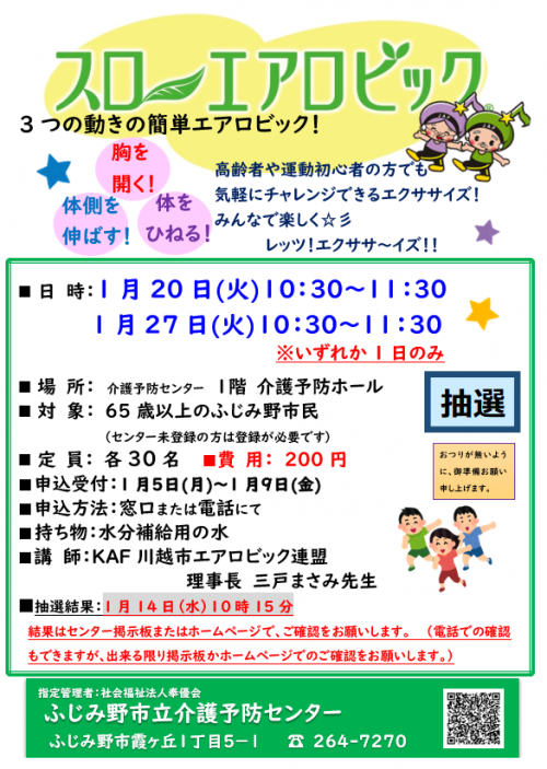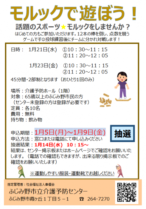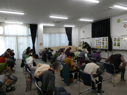 2026.01.19 スポーツ吹き矢を開催しました! 活動報告 #ふじみ野市立介護予防センター #スポーツ吹矢 2026.01.19 明日は大寒です!うがい・手洗い・ぴんしゃん体操で寒さを乗り越えましょう! 活動報告 2026.01.19 歯科衛生士によるミニ講座~ブクブクうがいとガラガラうがい~ 活動報告 2026.01.17 「楽しい脳トレ体操」を行いました。 活動報告 2026.01.17 「美容講座」を開催いたしました。 活動報告 2026.01.16 栄養つなぐプロジェクト 管理栄養士と理学療法士によるコラボレーション講座を実施いたしました。 活動報告 2026.01.16 朝の「ぴんしゃん体操」を行いました! 活動報告 2026.01.15 「ヨガ教室」 コース制スタートです。 活動報告 2026.01.15 朝のぴんしゃん体操を行いました。 活動報告 2026.01.15 看護師講話開催しました! 活動報告 2026.01.14 警察による注意喚起講話を開催しました! 活動報告 2026.01.14 朝のぴんしゃん体操を行いました 活動報告 2026.01.14 『モルックで遊ぼう!』 抽選結果発表 お知らせ 2026.01.13 1月「スローエアロビック」の抽選結果発表! お知らせ #ふじみ野市立介護予防センター #スローエアロビック 2026.01.13 朝のぴんしゃん体操開催しました。 活動報告 1 2 3 4 … 80