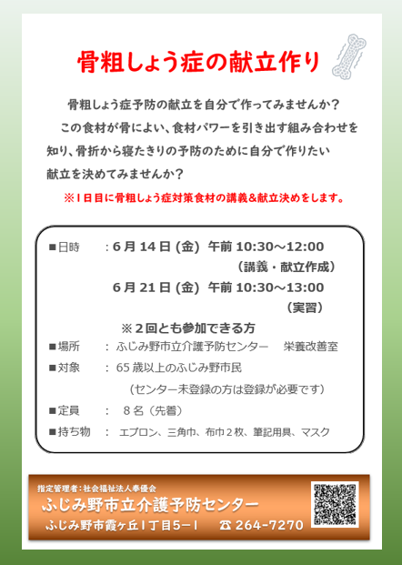 来月、6月14日と21日(金)に骨粗しょう症の献立づくりを行います!