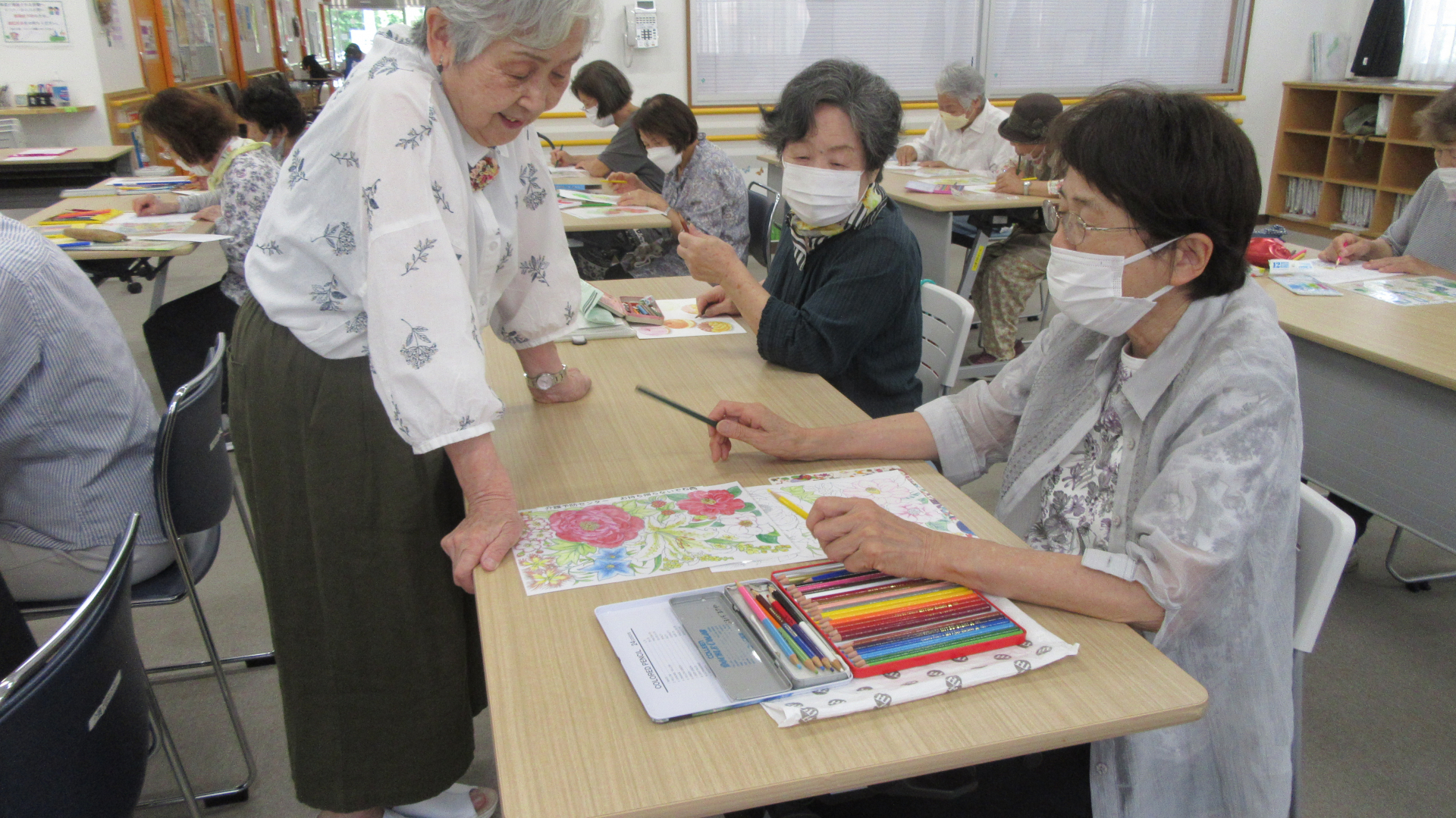 お互いに塗り方を教えあったり、褒めあったりと、会話も楽しまれています。