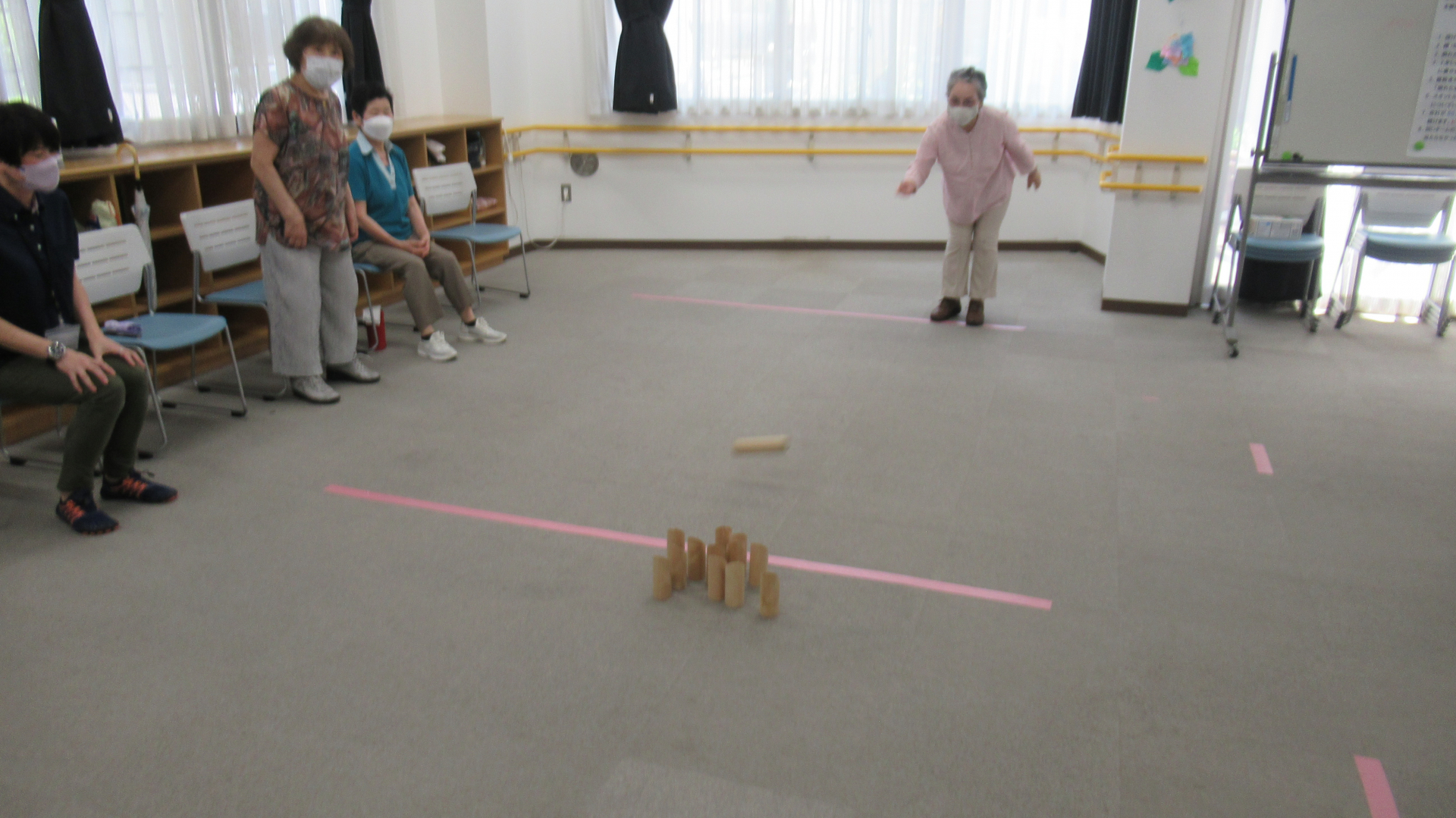 投げる棒は楕円形なので思った方向に転がらないので、ピンに上手く当たらないこともあります。