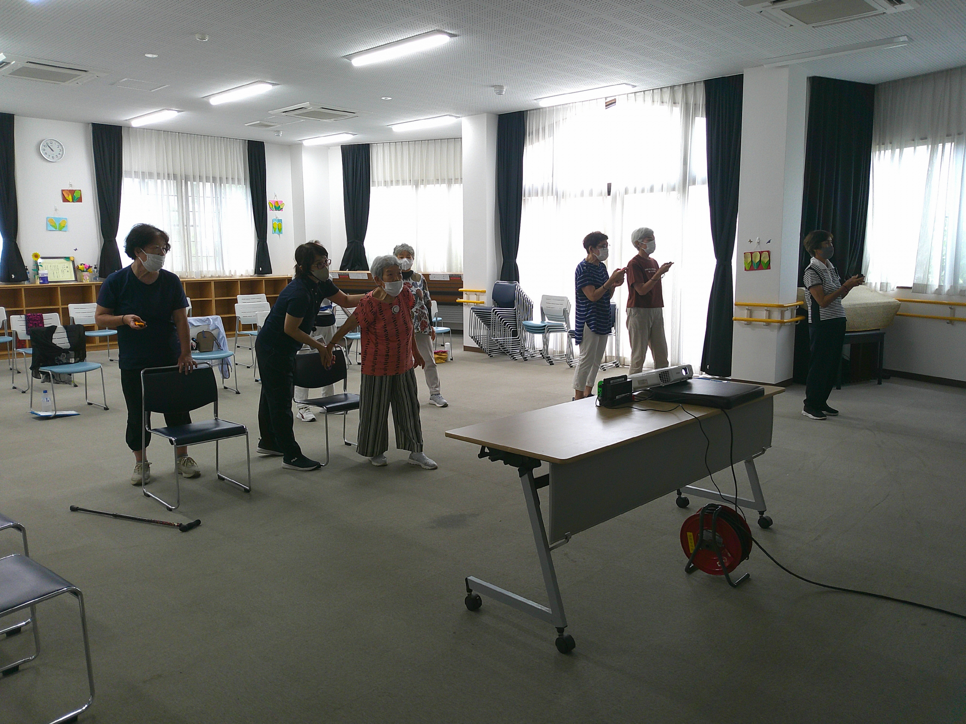 足に不安のある方は、椅子に捕まりながらか、座って行いました。