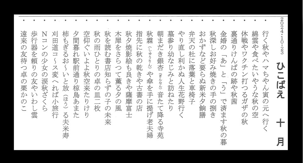 俳句自主グループの10月の作品です。