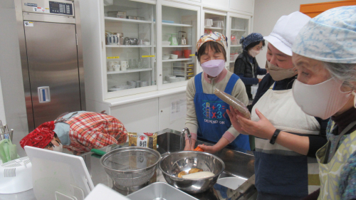続いて、リースを作ります。細かい作業に皆さま集中しています。可愛いお花のパーツが出来上がりました。