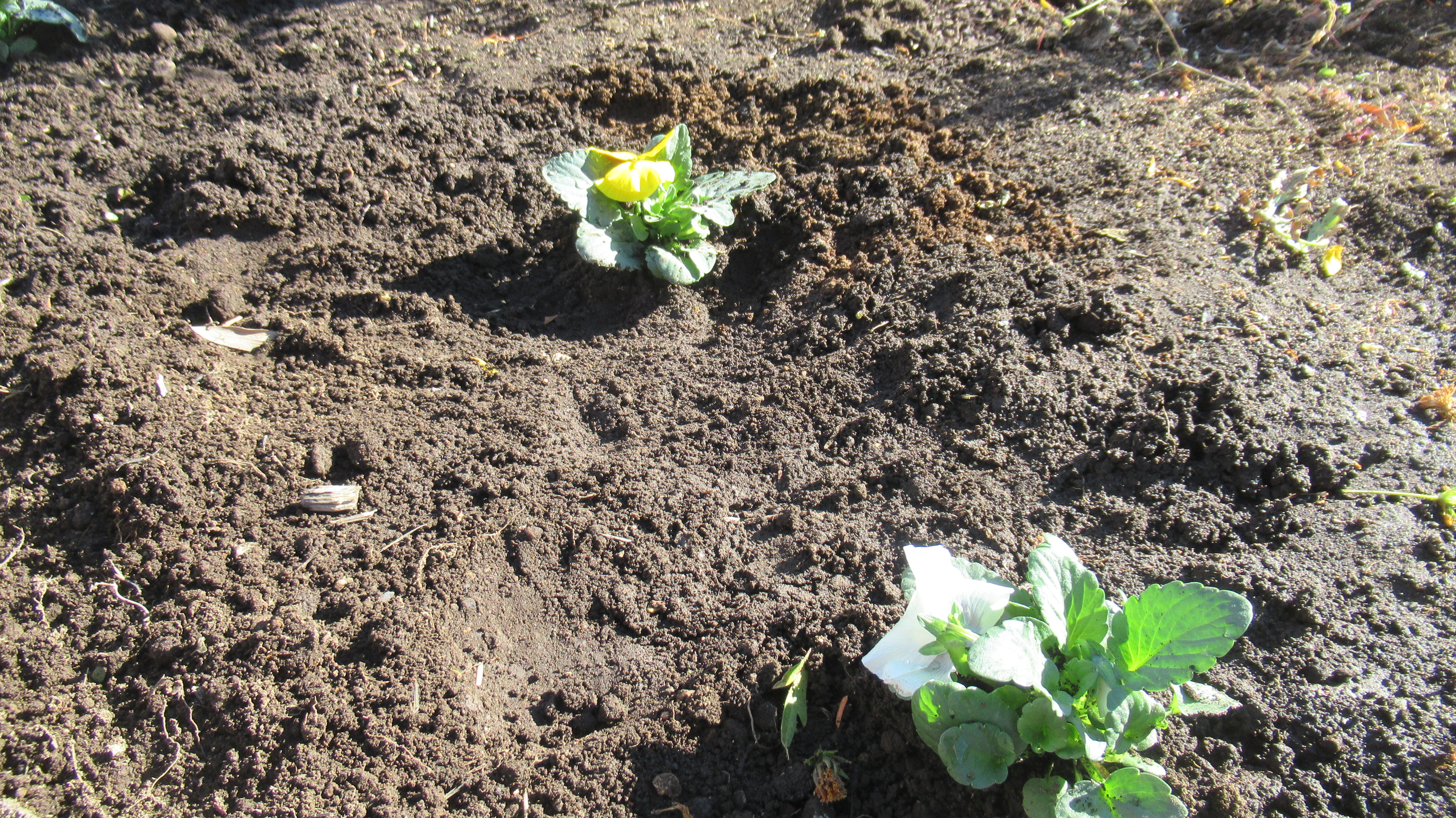 今日は、春に向けて菜園ボランティアさんとビオラを植えました。