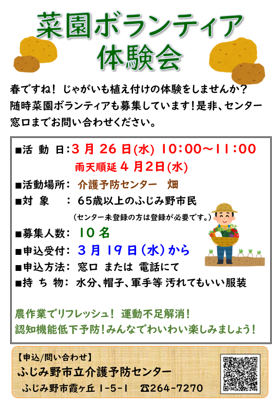 じゃがいもの植え付け体験しませんか?菜園ボランティア体験会開催します!