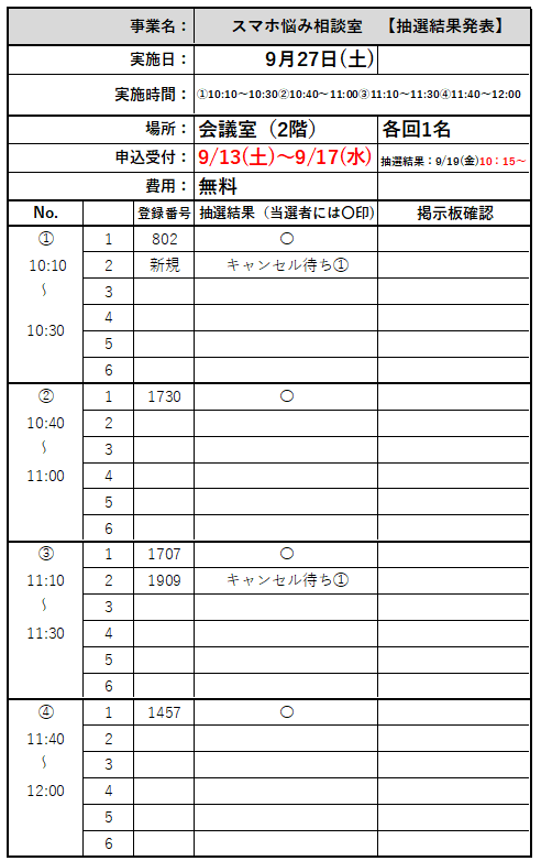 お申込みをいただき、ありがとうございました。キャンセル待ちになってしまった方は、申し訳ございません。また、お申込みお待ちしております。