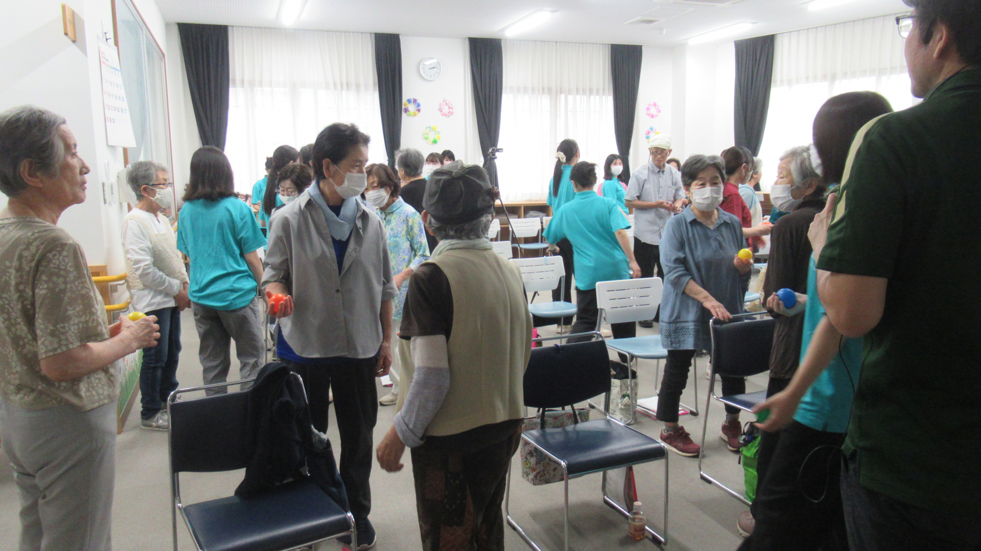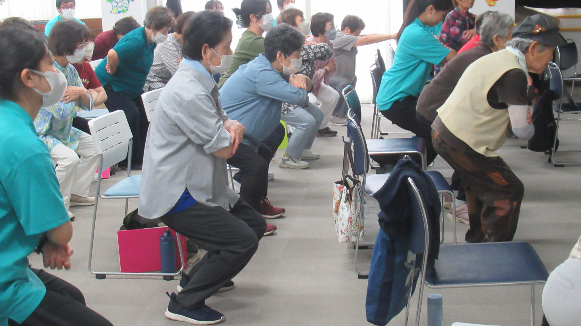 また、ボールを使った運動は大変盛り上がりました!そして、スクワットを一緒に頑張りました!!