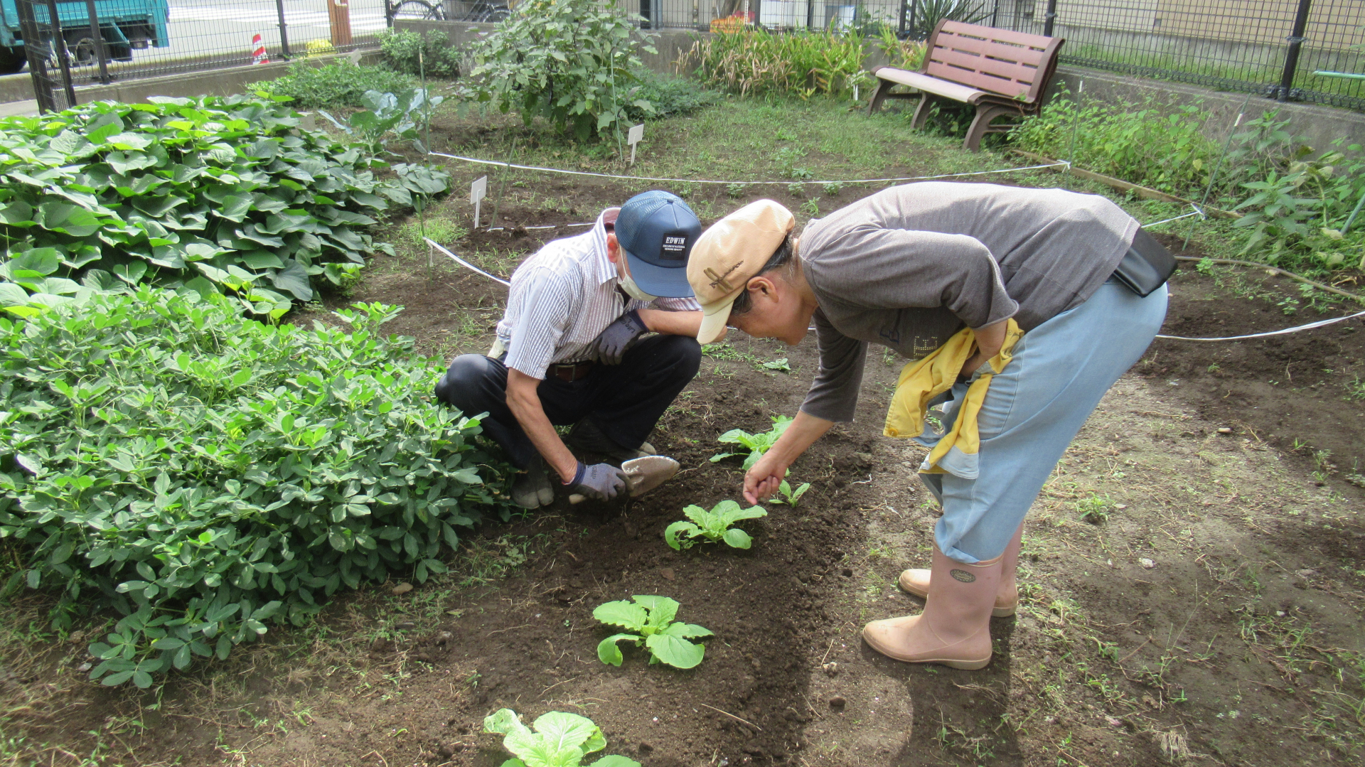 本日は菜園ボランティアの皆様で除草作業を行いました!先日植えた白菜の苗も大きくなっています。