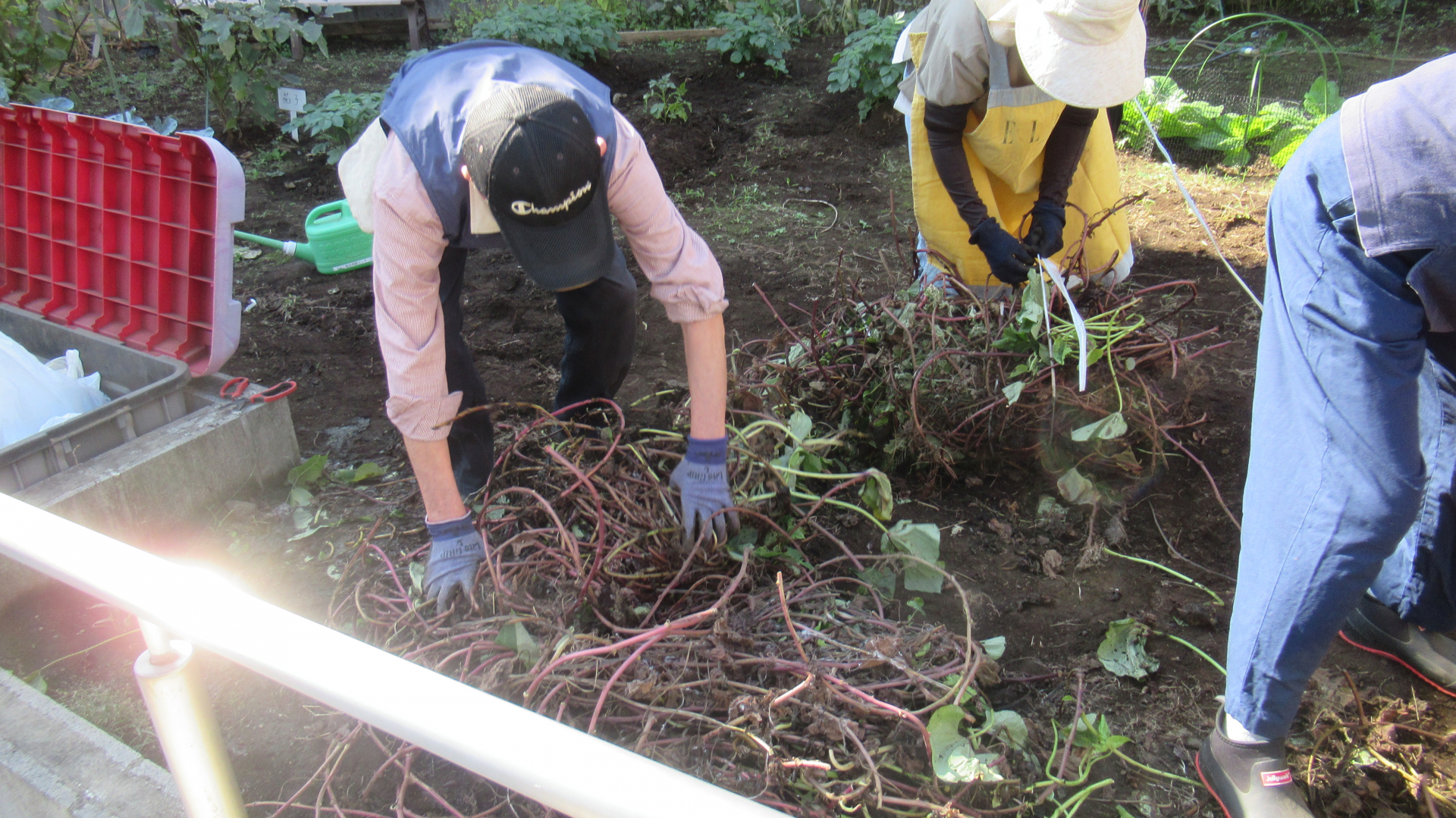 先日収穫したさつまいものつるが少し嵩が減ったので、片付けをしました。