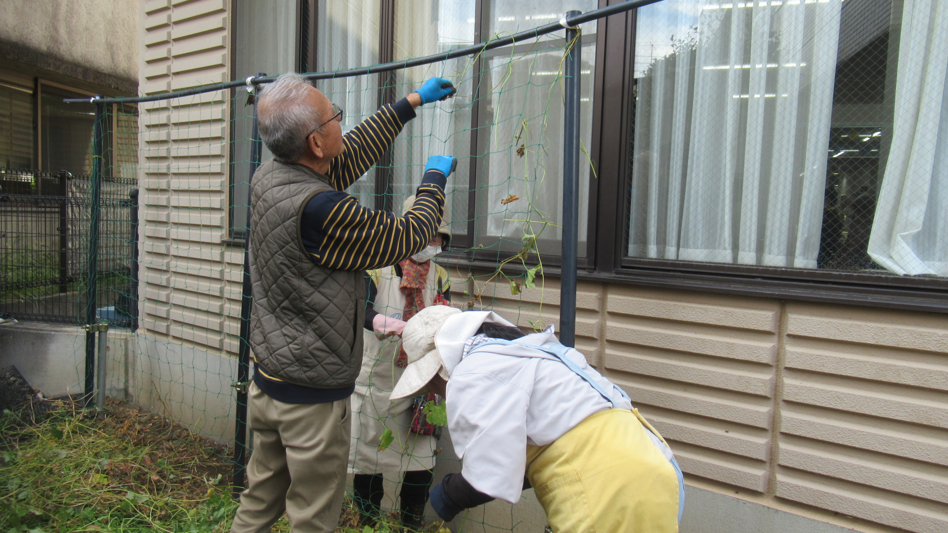 緑のカーテンも綺麗になり、冬支度も万全! 風が冷たく、肌寒い中の作業 ありがとうございました。