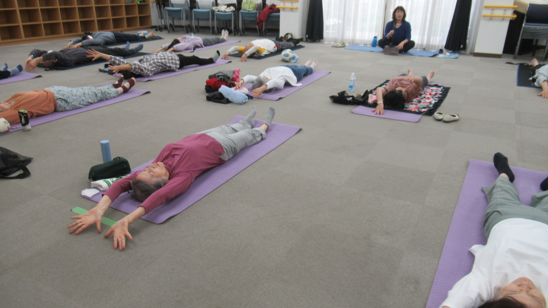 全身の筋肉をじっくりと伸ばす動きが多く、講座の後半には体がポカポカしてきました(こっそり担当も参加しています)