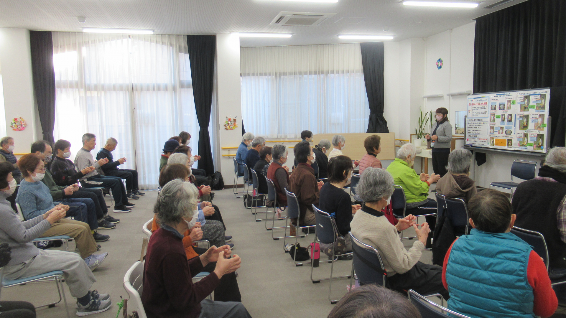 ふじみ野市立介護予防センターでは、朝のぴんしゃん体操をおこないました。