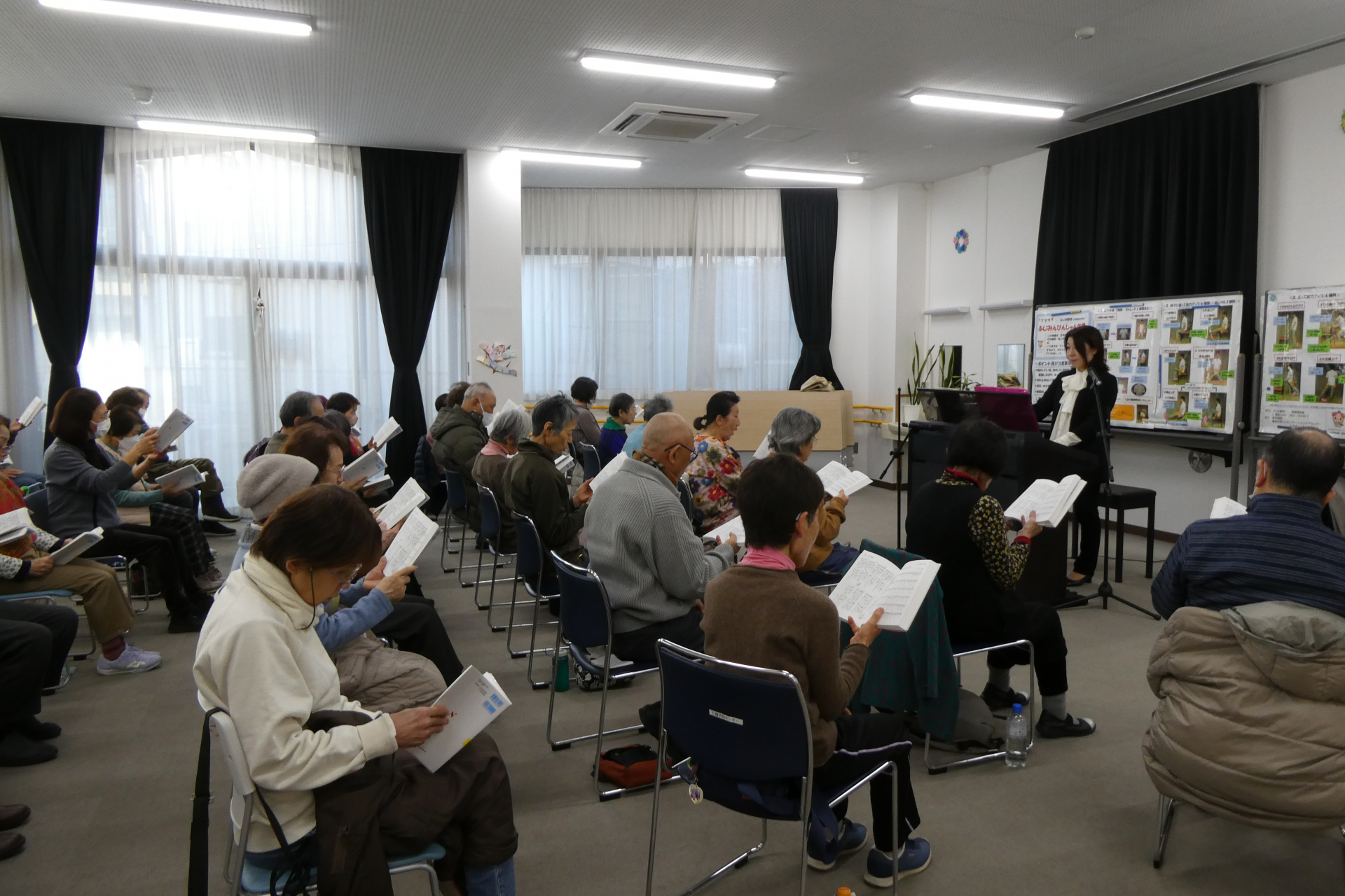 先生のお話や歌声も素敵で、大きな声で歌うとスッキリします。楽しい時間です!
