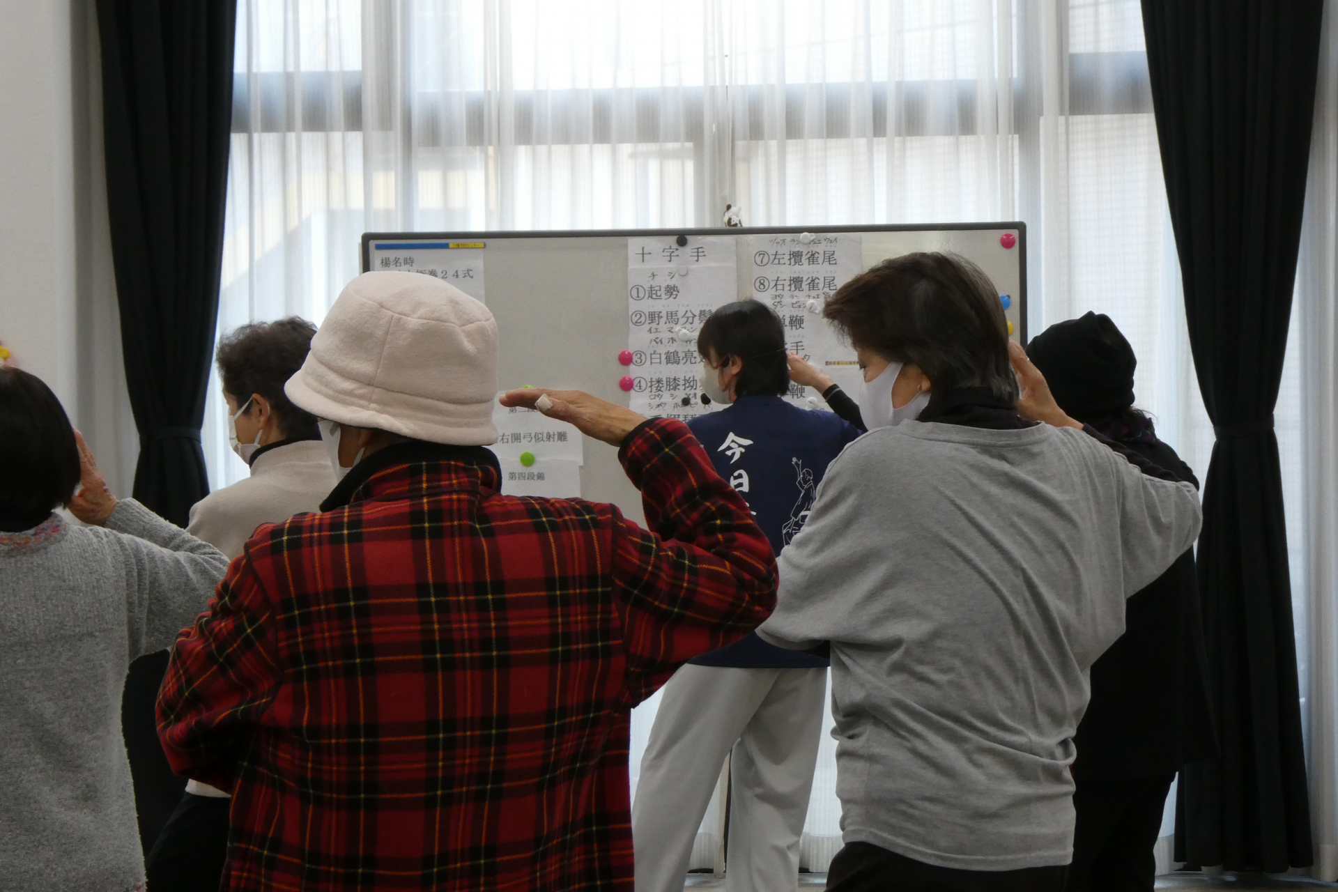 今日も先生の優しいお声で始まり、皆様とても集中して太極拳を楽しんでいます。皆様、鶴のようにしなやかな動きです!
