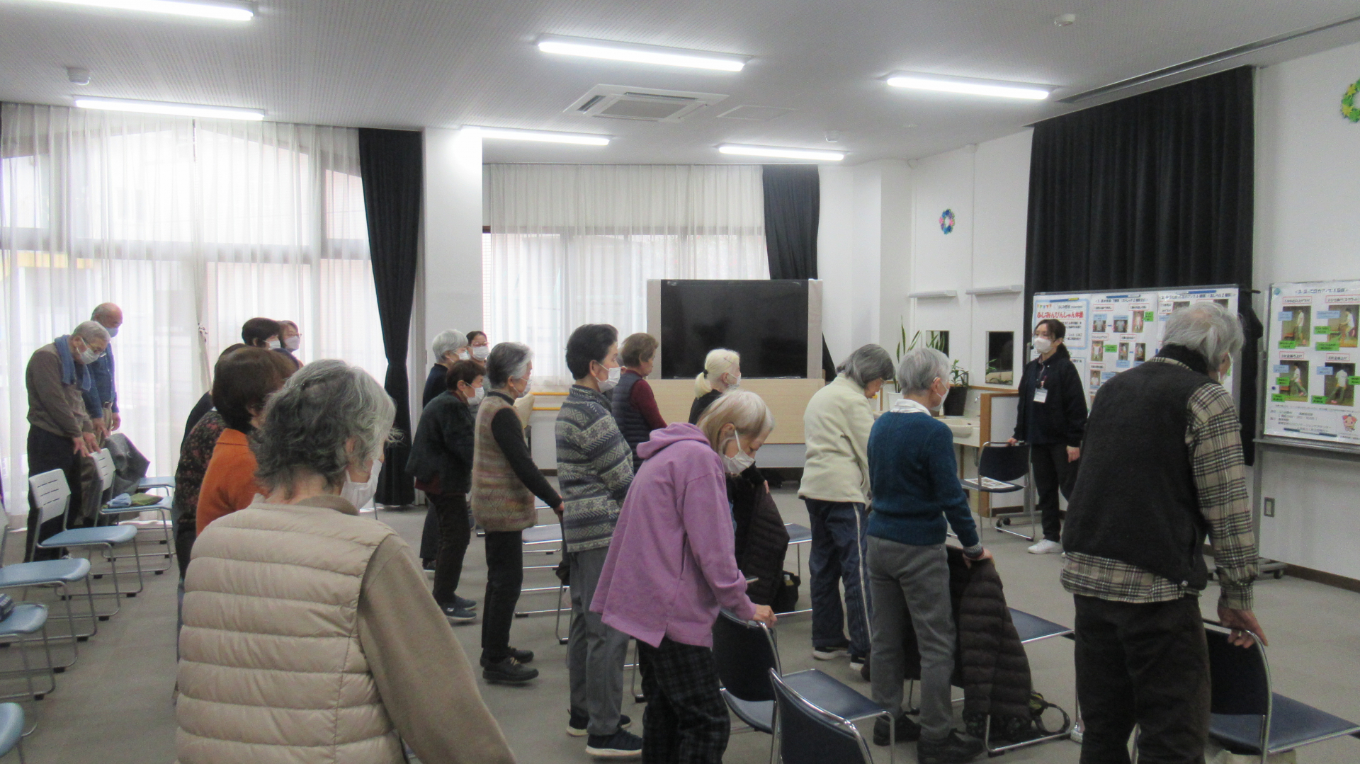 今日は少しの時間帯雪がちらつくほど寒い朝となりましたが、たくさんの方がぴんしゃん体操に参加されました。