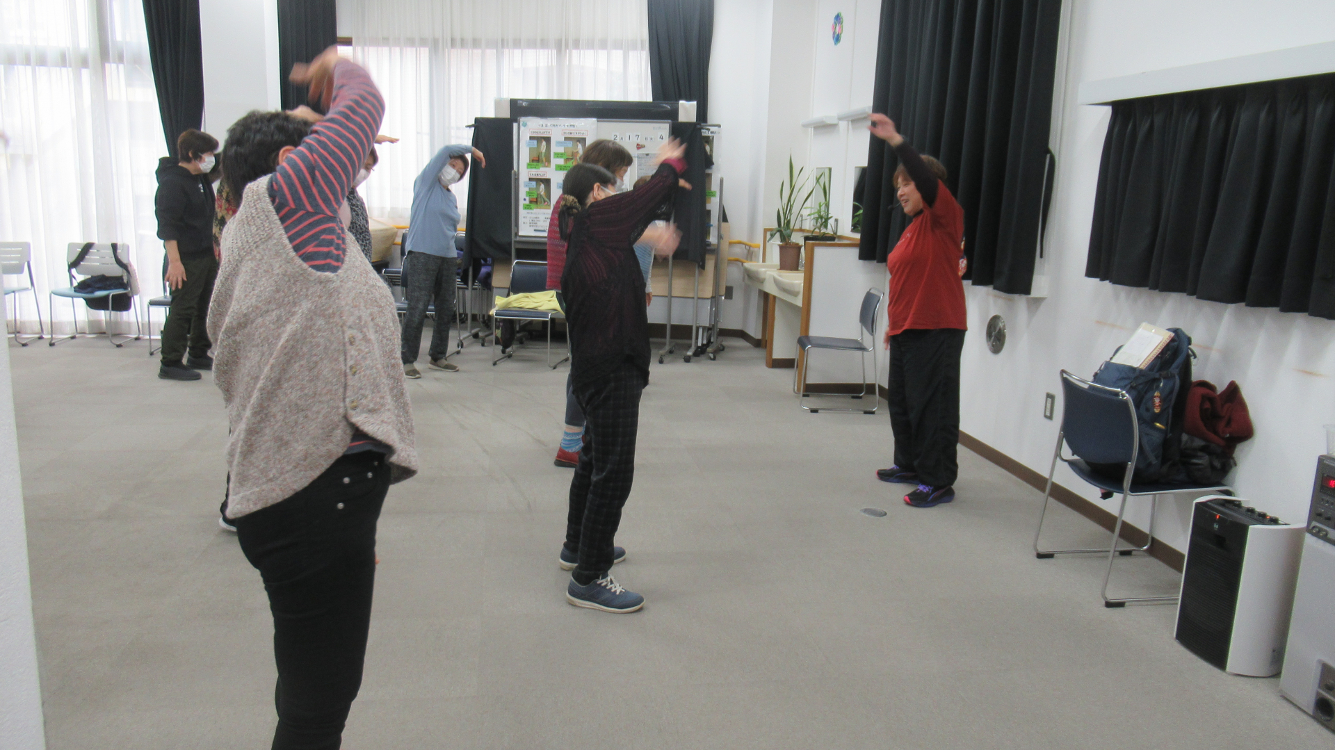楽しい音楽に合わせて身体を動かしていきます。最後はストレッチもしっかりと行いました。