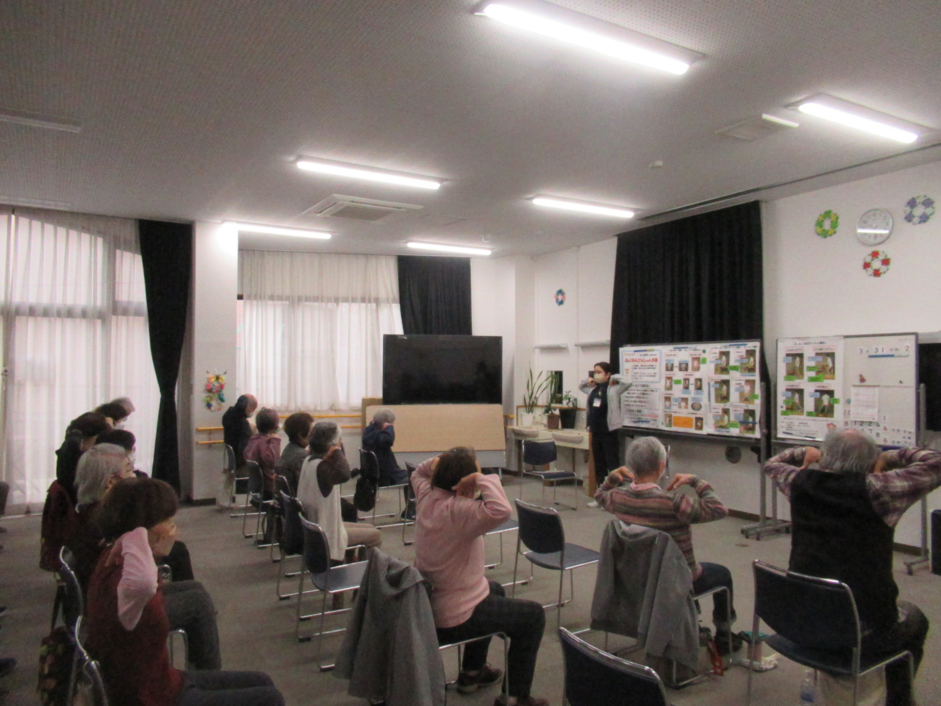 今日はどんよりとした曇り空でしたが、介護予防センターはぴんしゃん体操参加の皆さんの元気な声が響き渡っていました。