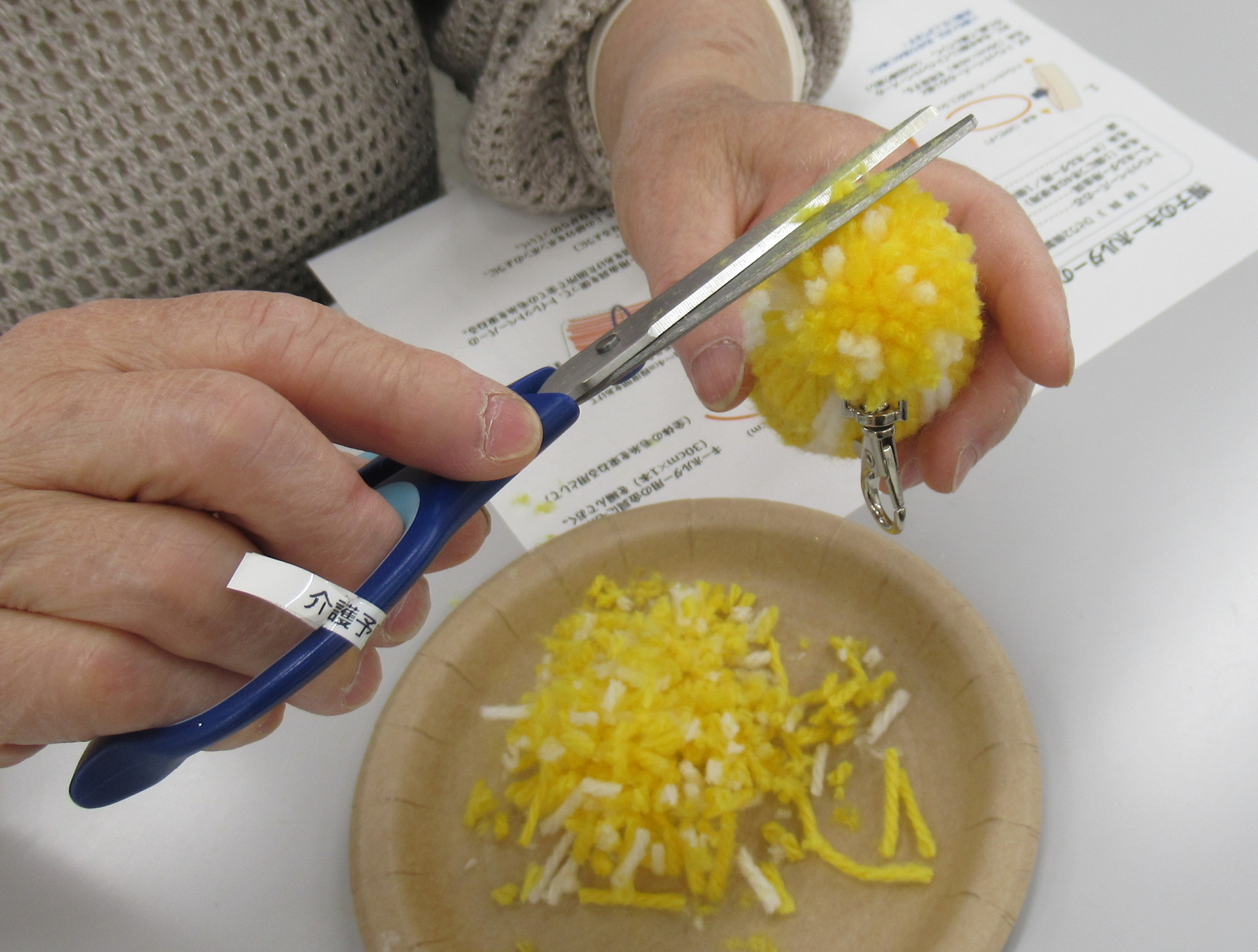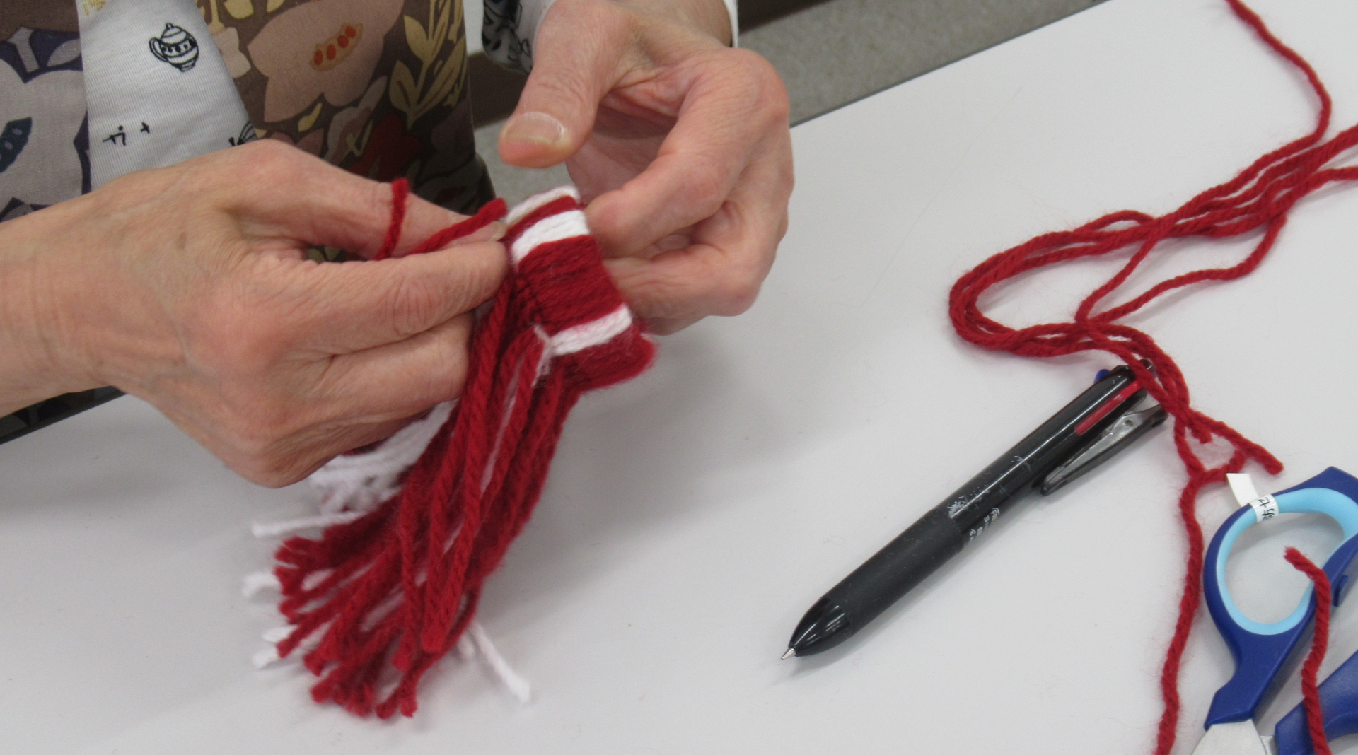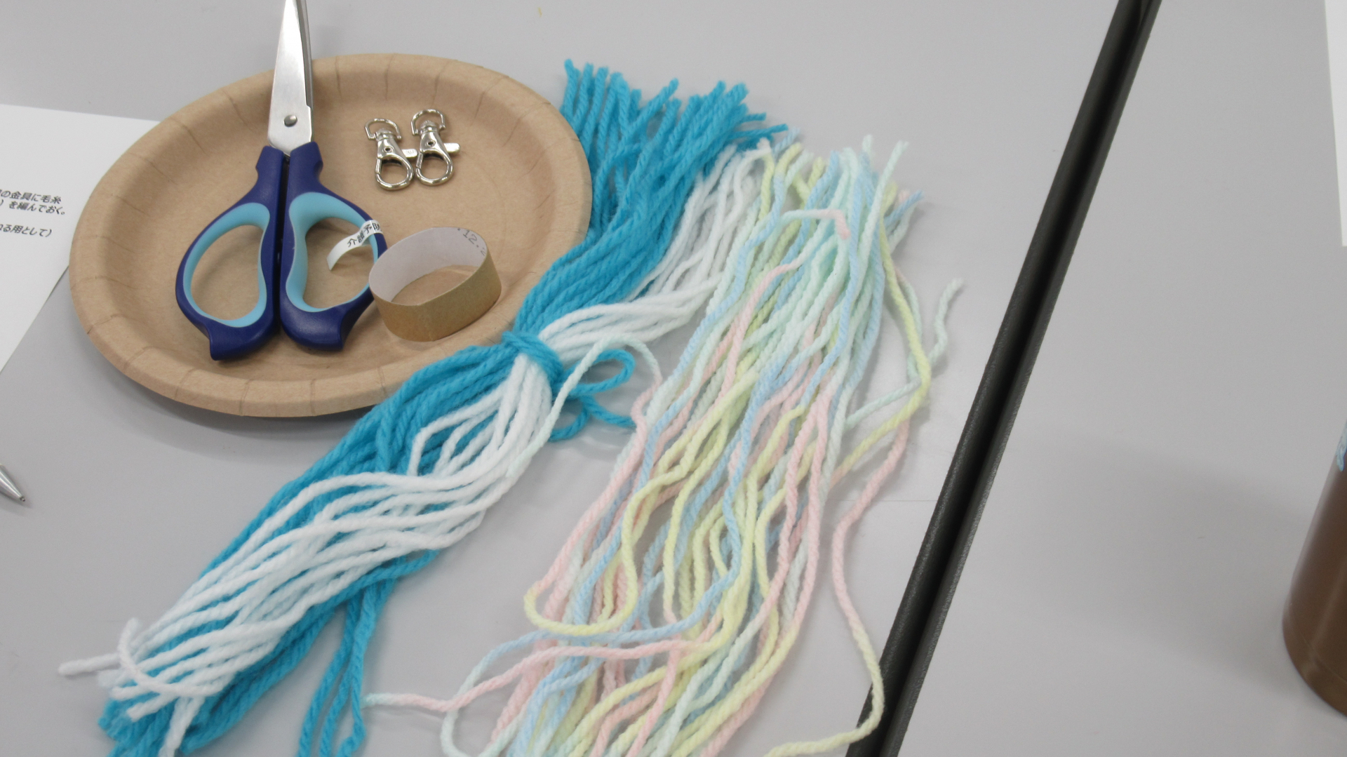 わくわく工作で毛糸の帽子のキーホルダーを作りました!