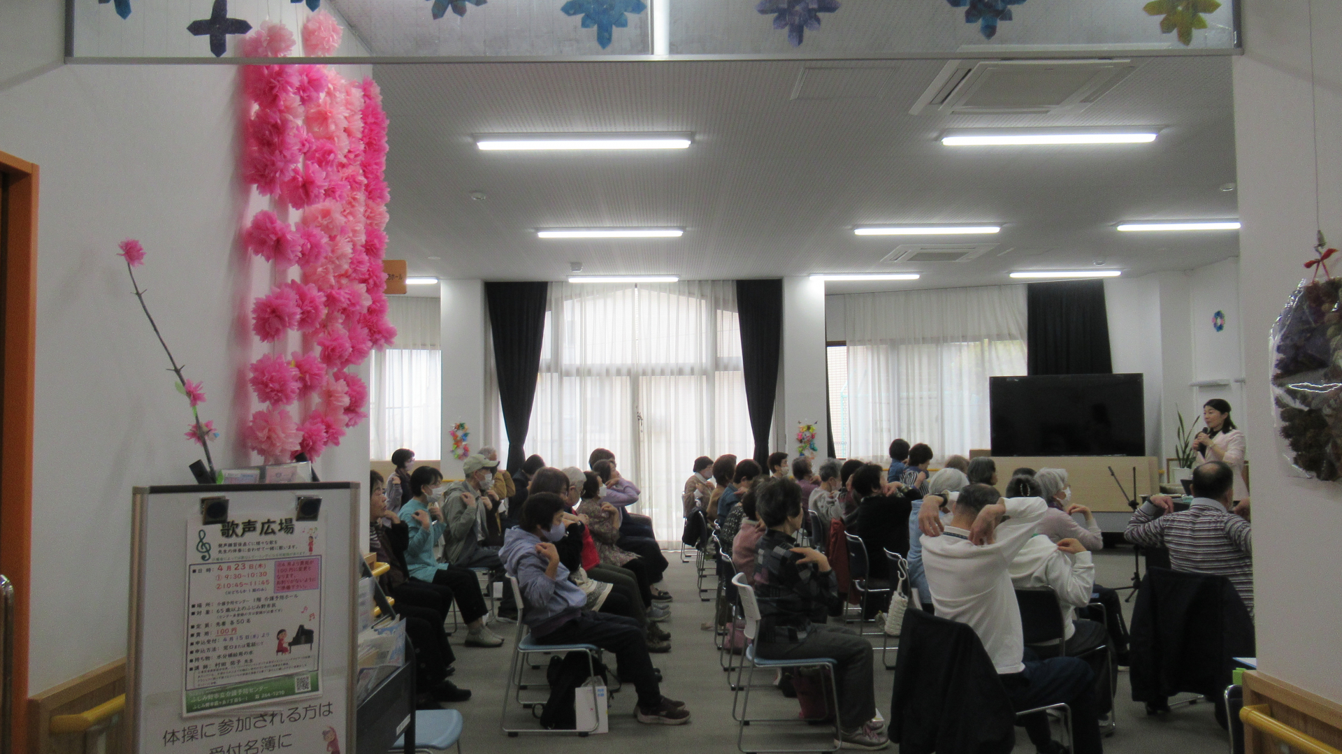 今月も満員御礼!皆様の歌声が介護予防センターに響き渡っています。素敵ですね。