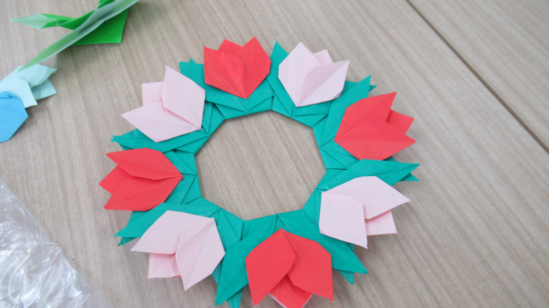 前回の続きで、まず、リースの組立を行って行きました。色々な可愛いチューリップリースが出来上りました!