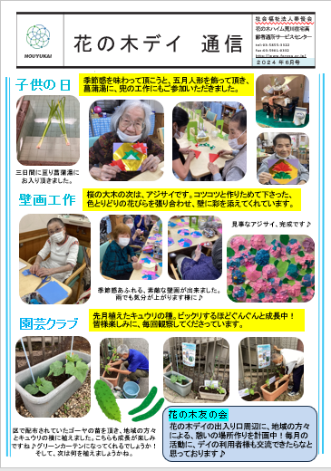 2024.06.01 お知らせ 【花の木デイ】花の木通信6月号 Tweet シェアする 花の木通信6月号が出来ました。ご覧ください。 花の木デイ:O #デイサービス #奉優会 #花の木デイ 前の記事 2024.06.01 お知らせ 【花の木デイ】6月の活動表 次の記事 2024.05.31 お知らせ 【花の木デイ】午後の体操 一覧へ戻る