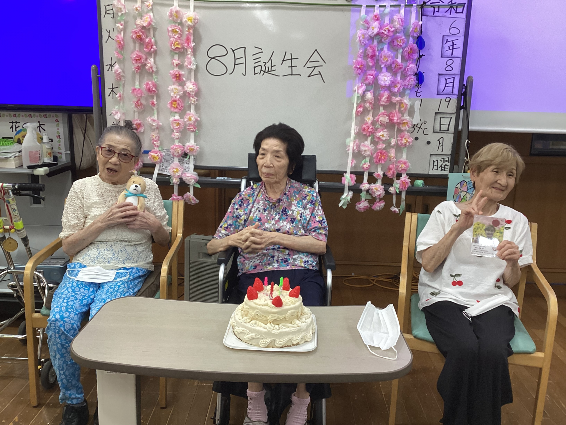 皆さまこんにちは♪今日の午後のレクリエーションの後は、8月のお誕生日会でした♪それはそれは楽しいお誕生日会でした♪