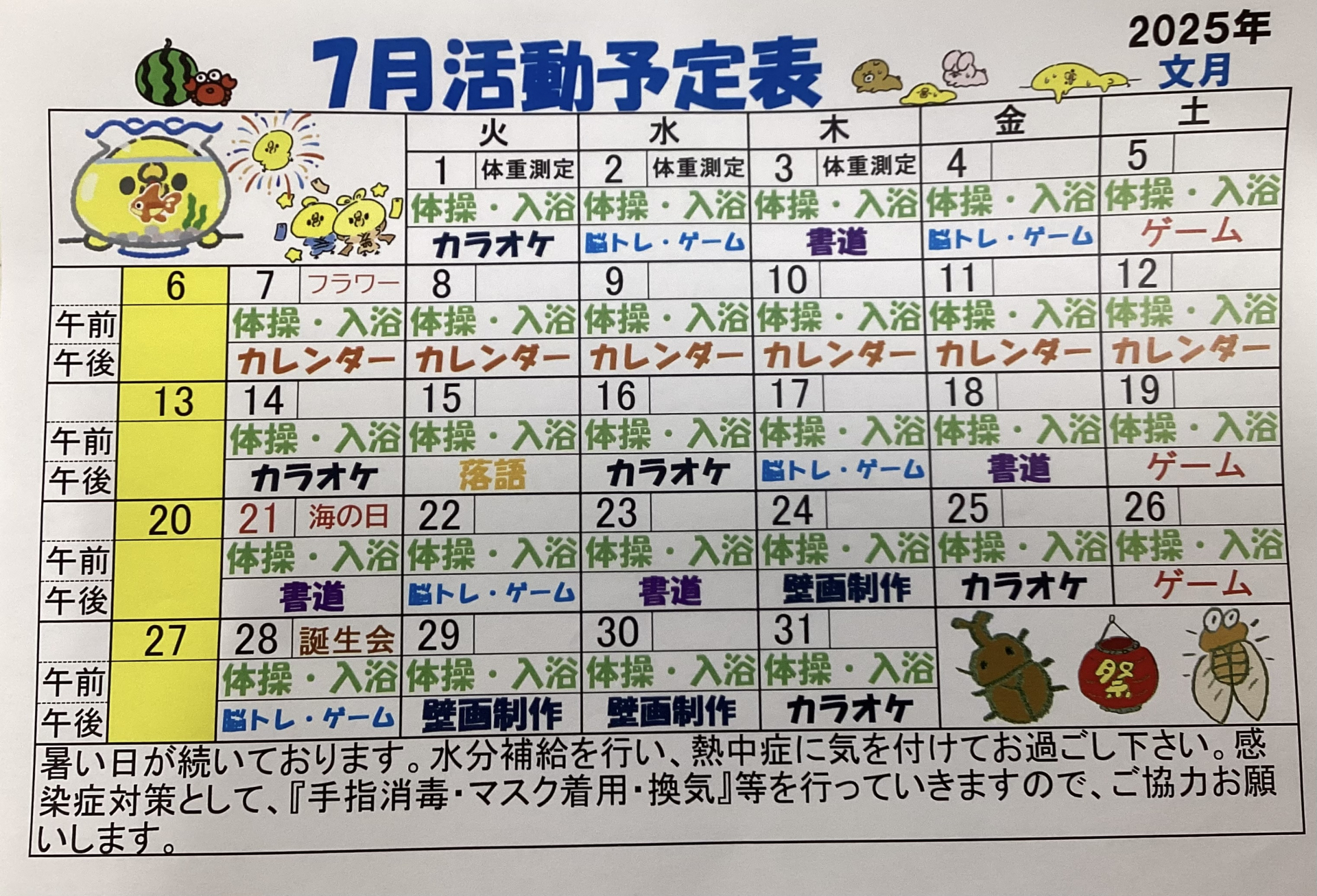 今月の予定表を投稿させていただきます。