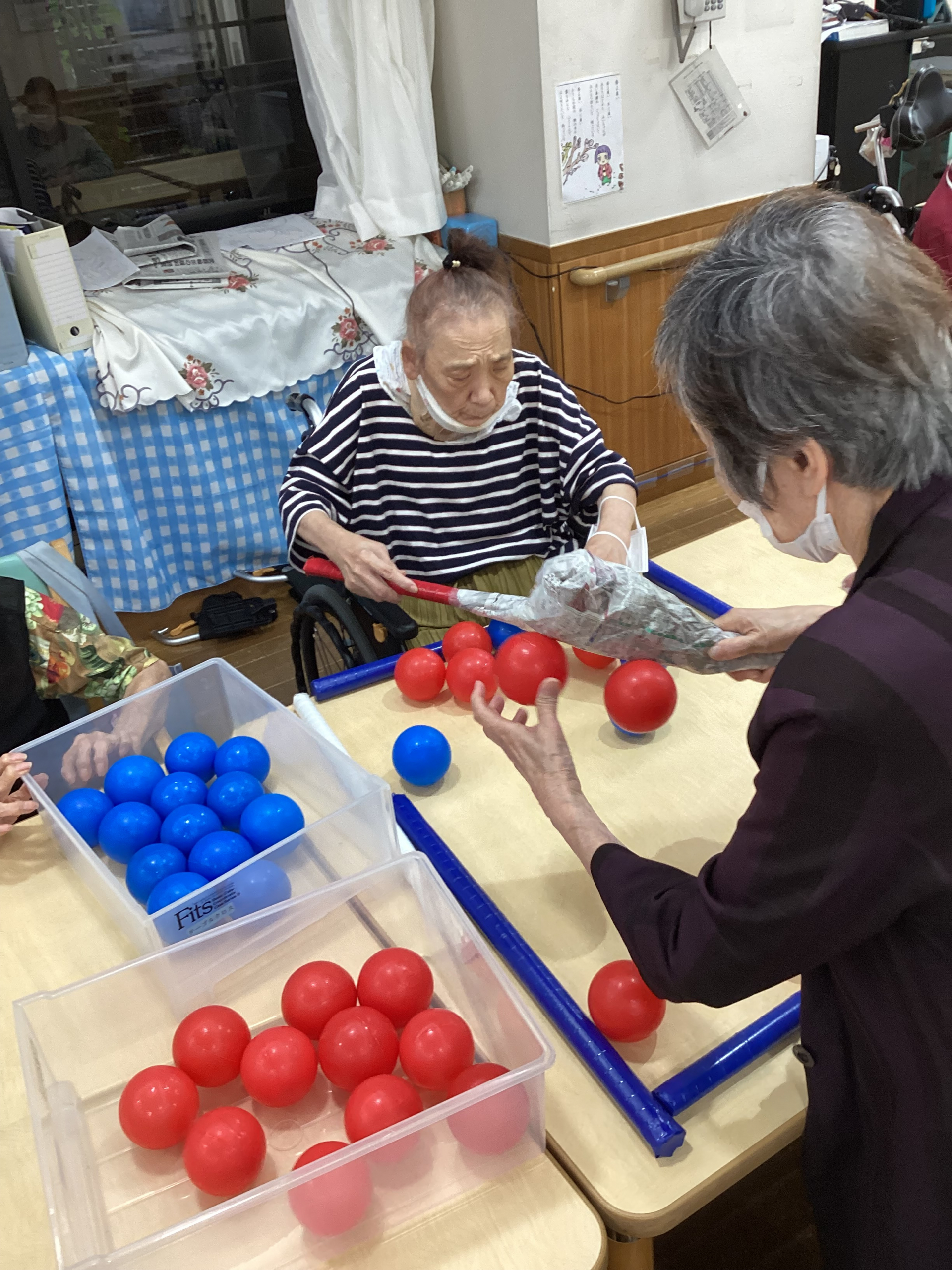 フラワーカップ制作の後、皆さんでボールゲームをやってみました‼︎