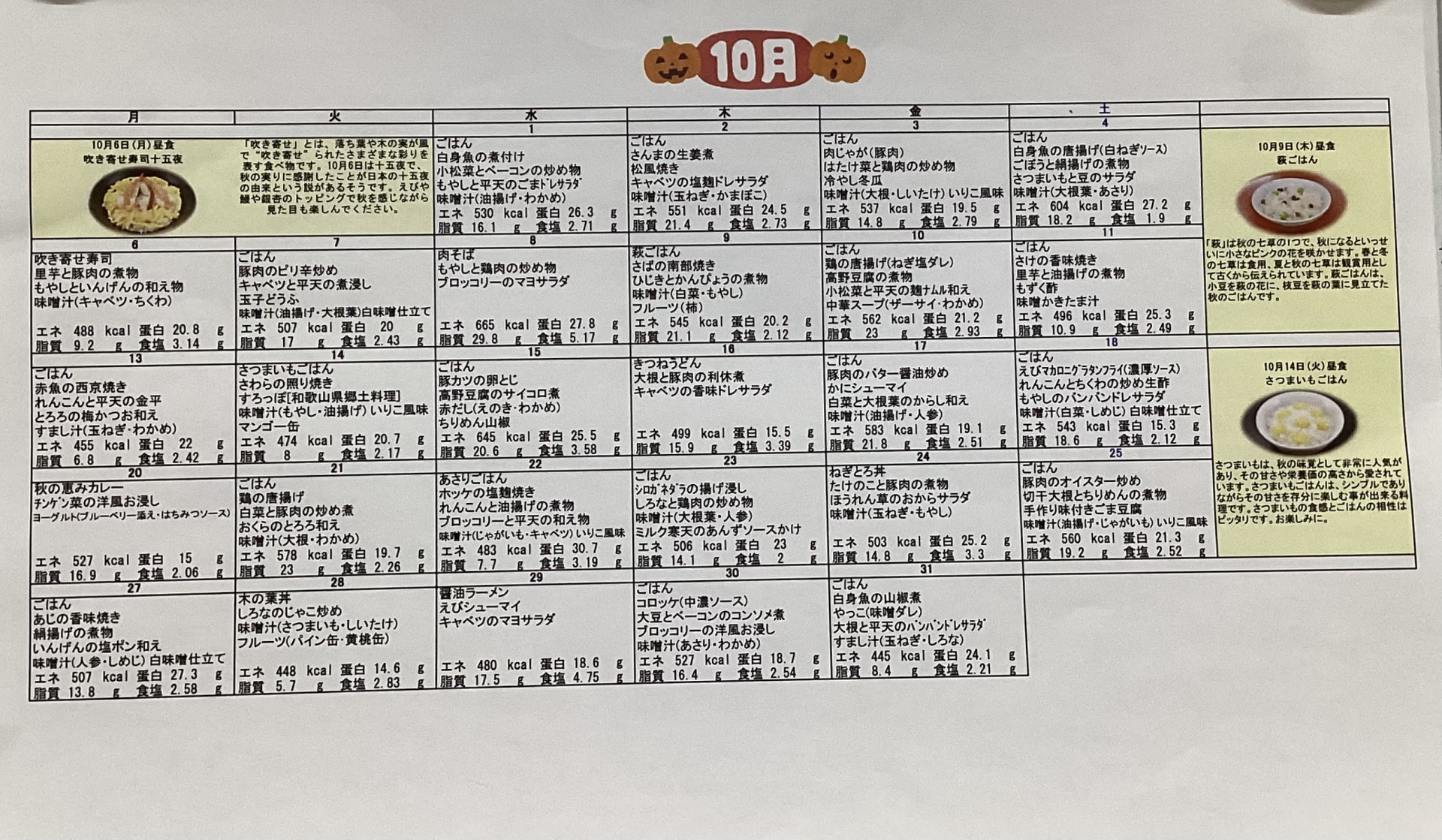 今月は6日に吹き寄せ寿司十五夜、9日に萩ごはん、14日にさつまいもごはんが提供されます。